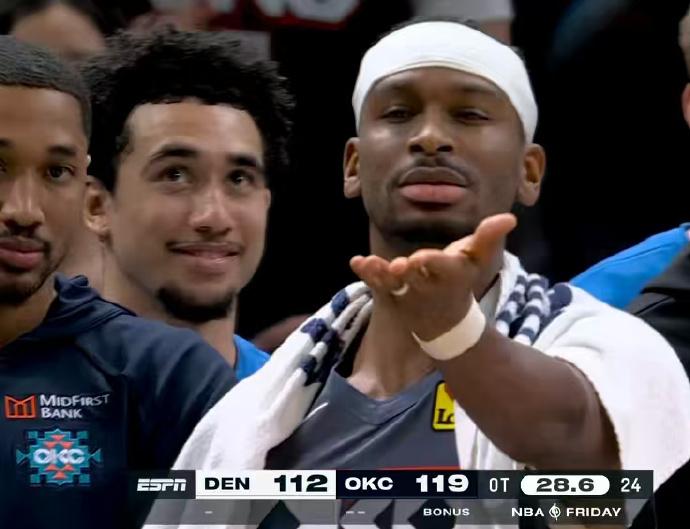 这才是强队!雷霆127-121击败掘金! 这比赛的进程和强度,可以说是全明星之后最精彩的一场球。 双方对抗拉满,MVP球员对飚,还有冲突爆发,再打加时赛,可以说是故事性拉满。 亚历山大刚刚复出,有出场时间限制,加时赛没有登场,但他常规时间也拿到了36分9助攻6篮板2盖帽2抢断,经此一战,他在MVP的竞争中,对约基奇的领先又增大了不少。 约基奇:23分17篮板14助攻 穆雷:39分8篮板6助攻 掘金真的尽力了...