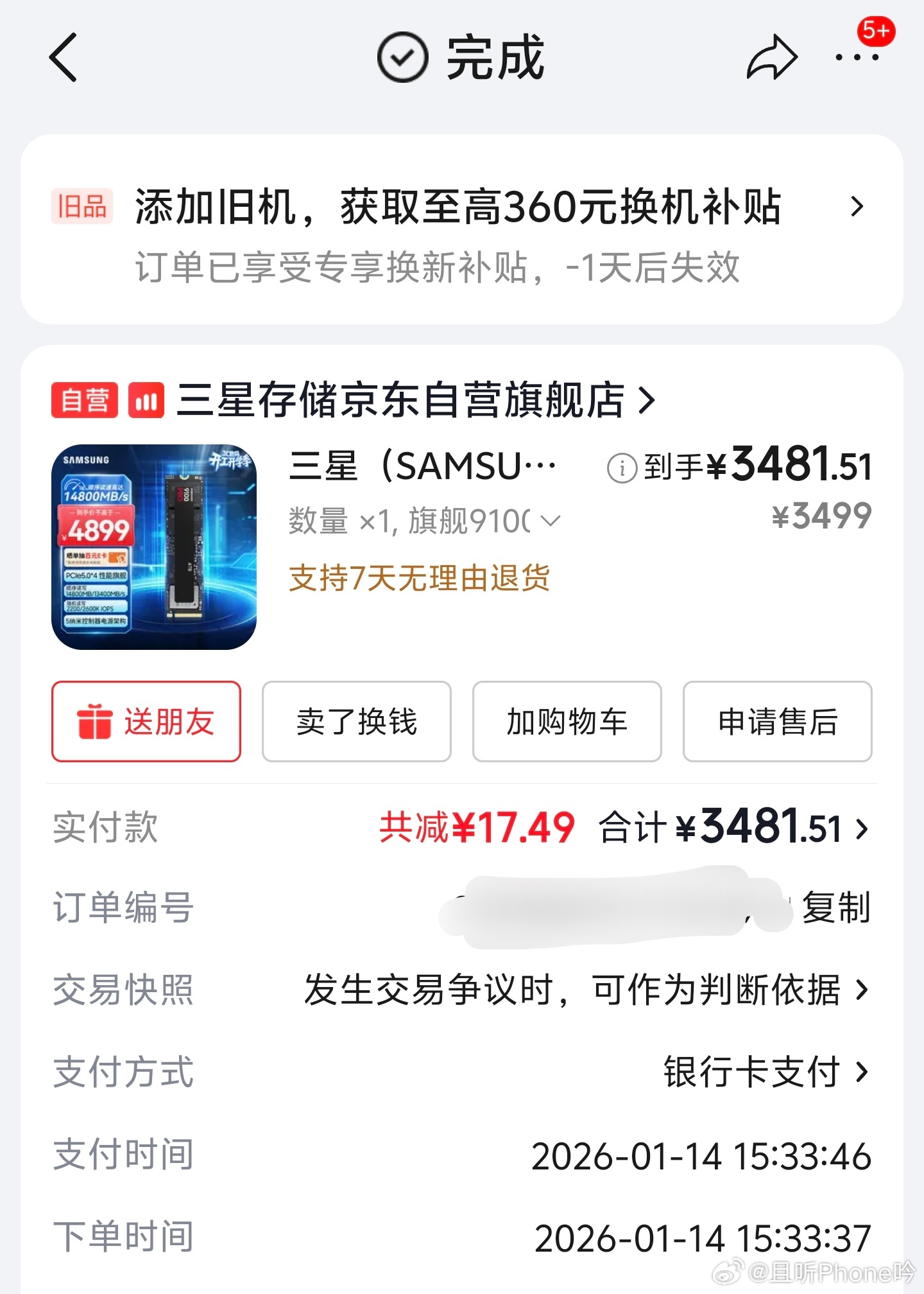 去年59元买的内存卡今年卖197元 别说去年买了,一月买的硬盘,今天一看俩月涨了1400。