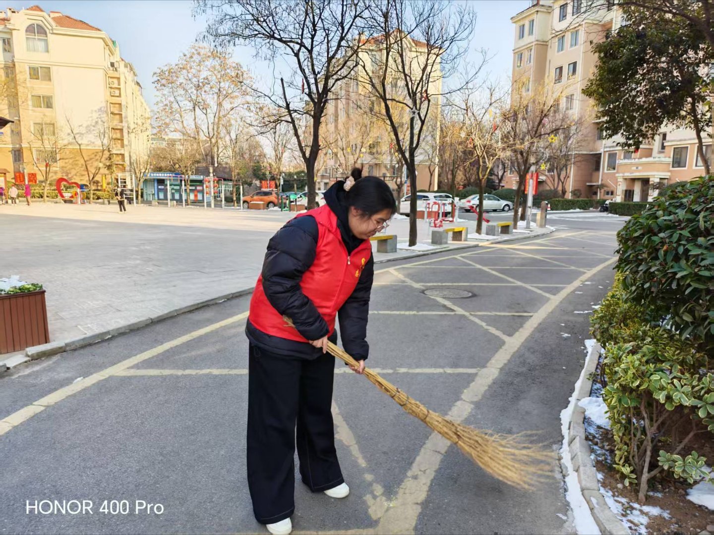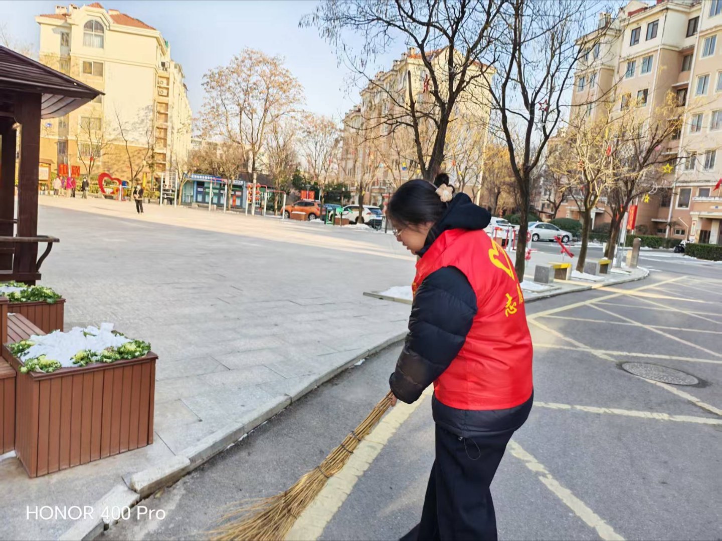 寒风凛冽,却挡不住队员们服务的热情;汗水浸湿衣衫,却浇不灭大家奉献的初心。清扫过程中,队员们相互配合、分工协作,有的弯腰捡拾垃圾,有的奋力清扫路面,有的认真擦拭设施,每一个动作都彰显着青年学子的踏实与严谨。遇到难以清理的顽固污渍,队员们便徒手一点点铲除;看到社区居民主动上前询问,队员们耐心解答,并积极倡导大家自觉爱护环境、不乱扔垃圾,共同守护整洁优美的社区家园。社区居民们对实践队的举动纷纷表示称赞,有的主动加入清洁队伍,与队员们一同劳动,现场氛围热烈而温馨。