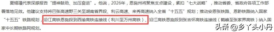 好消息!利川市有望迎来第二条高铁! 届时,利川到万州只需20分钟。一个20分钟的距离,能改变什么?对于利川而言,这是一场从地理末梢迈向交通枢纽的“关键一跃”。 近日,沿江高铁恩施段至西渝高铁连接线——利川至万州高铁,正式被纳入国家中长期铁路网规划。当“规划”二字落定,一条设计时速350公里的钢铁动脉,就此在鄂渝交界的群山间描绘出清晰的未来。消息传来,最令人心动的莫过于那个具体的时间:建成后,利川到万州,仅需约20分钟。 这短暂的20分钟,彻底击穿了武陵山区的时空壁垒。它不再是地图上相隔的区县,而是变成了一杯咖啡尚未冷透的通勤距离。借由万州这一枢纽,利川将无缝融入成渝双城经济圈的“一小时生活圈”。 格局一旦打开,视野便豁然开朗:依托已在火热建设中的沿江高铁,未来的利川,向北至重庆1小时,向东至武汉2小时,到成都2小时,一路驰骋至上海也不过5小时,这座曾经受困于重峦叠嶂的“山区小城”,正以前所未有的速度,与国家级城市群同频共振。 这条高铁的分量,远不止于便捷。它是国家战略棋盘上的一步“妙手”。从宏观版图上看,利万高铁如同一根精巧的“金丝带”,将横向的沿江高铁与纵向的西渝高铁这两条国家干线紧密串联。它不仅补上了恩施州南北向高铁的关键短板,更让利川一举从路网的“通过点”,跃升为连接两大动脉的“十字路口”。自此,利川稳稳站上了国家铁路网的“C位”,其交通区位价值迎来史诗级的重估。 历史性的交汇正在这里发生。在建的沿江高铁与规划的利万高铁,将在利川的土地上画出清晰的“十字”。这使得利川成为鄂西、渝东北地区极为罕见的“双高铁交汇城市”。两条时速350公里的高铁,带来的将是人力、资金、信息与产业的奔腾交汇。山区曾经是阻隔,但在高铁时代,独特的生态与文化资源,反而成为吸引都市人群的磁石。可以预见,更密集的人流、更高效的物流、更活跃的商机,将随着两条高铁的贯通而全面爆发,为利川乃至整个武陵山区的乡村振兴与旅游业升级注入强劲动能。 利万高铁建成后, 将为沿线人民的出行带来更好的体验,一条高铁,改变一座城。当沿江高铁和利万高铁的线条在此交汇,利川的故事,正翻开速度与机遇交织的全新篇章,值得期待!