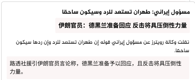 🔻路透社援引伊朗官员言论称,德黑兰准备予以回应,且反击将具压倒性力量。🔻姑且当路透社在阴阳怪气吧。以色列宣布袭击伊朗伊朗首都发生爆炸海外新鲜事热点现场