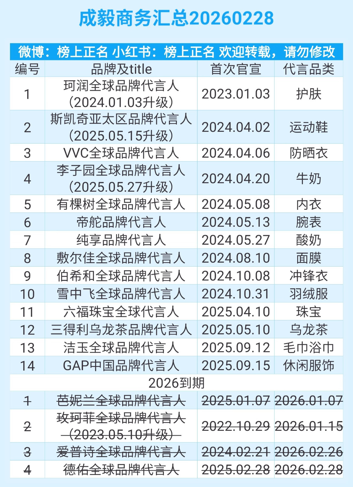 成毅代言商务汇总14个(更新2026.02.28)