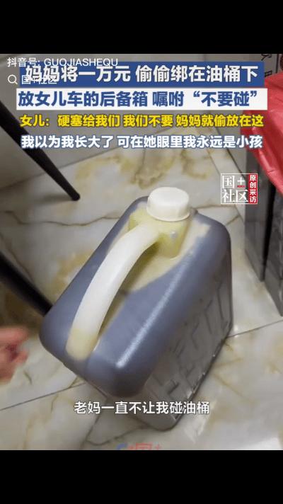 近日报道,江苏女子春节返程回家,妈妈给带了一桶油并不让她碰,女子开始以为妈妈怕自己不好拿。不料,回到家后油桶却怎么也放不平,仔细查看油桶底部后,瞬间破防了… 朱女士费了好半天力气,油桶还是左一歪右一斜,看着那“无敌防震包装”,一时间百思不得其解。 当朱女士终于把油桶底部的胶带撕开,里面竟然结结实实带了一叠现金,足有一万元。 这钱不是折起来放,而是缠在桶底,一圈圈贴好。 母亲担心女儿嫌弃,索性把这份心意藏在最不起眼的地方。 这个油壶不是大牌礼物,不够精致时髦,反倒最能让人破防。 母亲怕说了女儿嫌弃怕麻烦,却又放心不下,总想着她出门在外万一有用上钱的时候,油壶里那点“厚备用”能顶点啥。 有人说,成年人的情绪里,藏着太多“偷偷落泪”和“嘴硬心软”,母女俩这场“油壶迷案”,不过是中国式亲情最鲜活的刺点罢了。 一壶油也好,一叠现金也罢,藏得再深,都不及父母那份不动声色的执着。 历代中国父母,更喜欢把操心和祝福变成看得见摸得着的东西。 凑够回家过年车费的鸡蛋,暖宝宝里夹的零钱,路途上能扛饿的咸菜包,每一件小物件里,都透着“怕你苦”的慎重和“舍不得”的细腻。 说到物件,谁还记得行李箱后备箱被塞满的时候,母亲那张“还想再塞点”的局促脸? 明明说得很轻松,手停不下来,装了又嘱咐,恨不得全世界都能带走。 其实中国人表达感情,总喜欢加层包装。唐代诗人孟郊说过“慈母手中线”,而真到行动里,一件寒衣得从种棉到纺纱织布,母亲熬的是岁月和黑眼圈。 临行那会儿的密密缝,不只是手艺,更是盼望孩子远离风霜的真切。 再怎么变化的时代,身份角色轮换,动作里总逃不开“投喂”和“牵挂”这两个关键词。 朱女士这个油壶故事,其实是一股劲,要让家人走得远点、踏实点。 天下父母总是以最原始、最朴实的方式,把全部的挂念,搬进孩子的行李,装进一件普通的衣裳,注进油壶底,看似粗糙,实际用情至深。 每个离家的身影后面,永远跟着一份藏得不太高明、但很用力的爱。 这种爱往往无声,偶尔令人破防,只有被摊开时,才能看见刀切斧凿的痕迹。 漂泊的中国人,无数次在各种物件里碰见被关心的证据。 那些看似琐碎的碎片,才是千百年来中国式亲情的全部密码。 信息来源:女儿返程发现油桶下粘着一万元现金:之前塞红包没要,妈妈想到这个招,这份爱很沉重——2026-02-27 16:34·大象新闻
