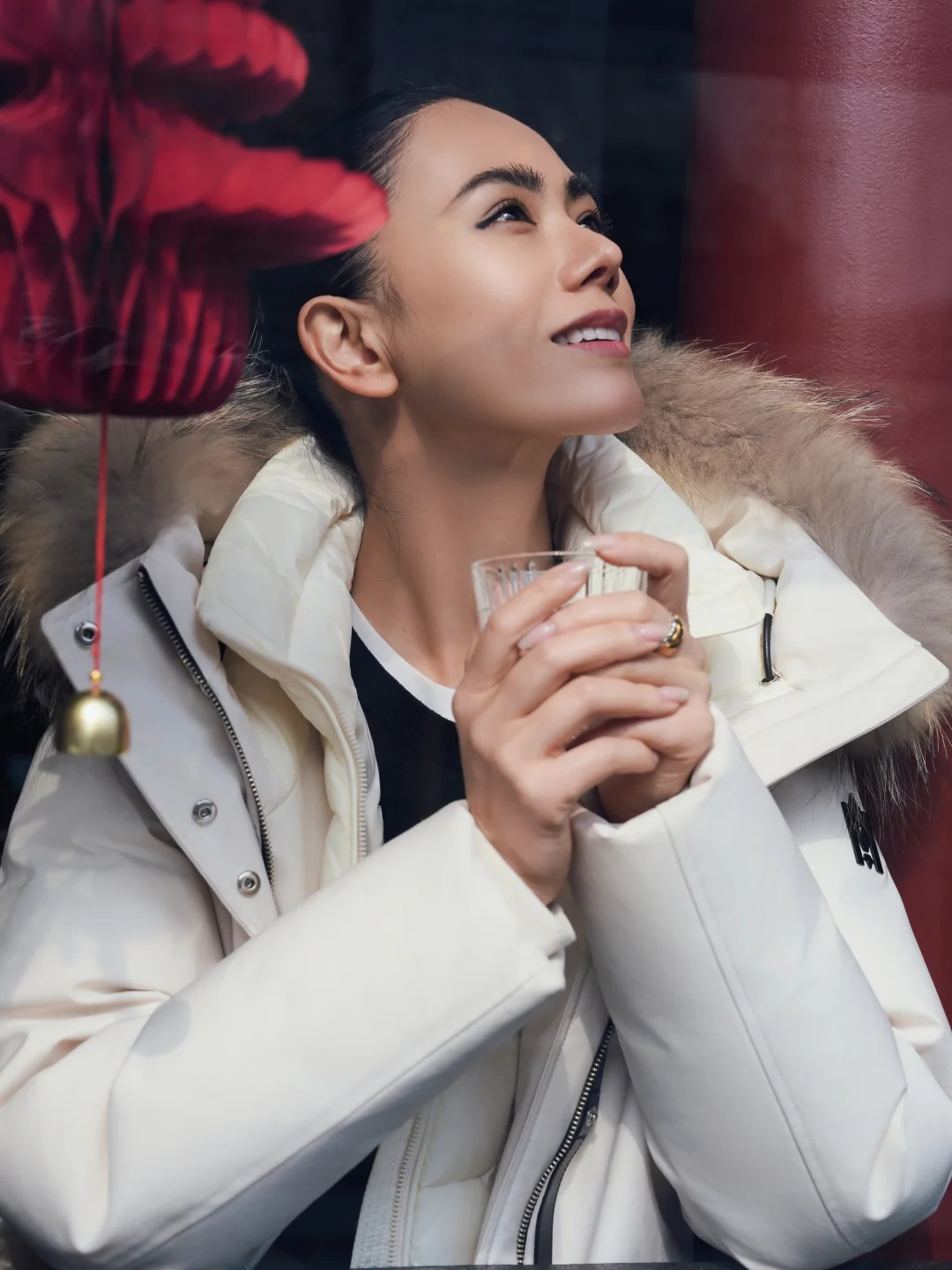风拂柳,粉樱绽放,我身着浅粉蕾丝旗袍,立于古栏之下。长袖轻笼,盘髻缀珠,耳坠摇曳
