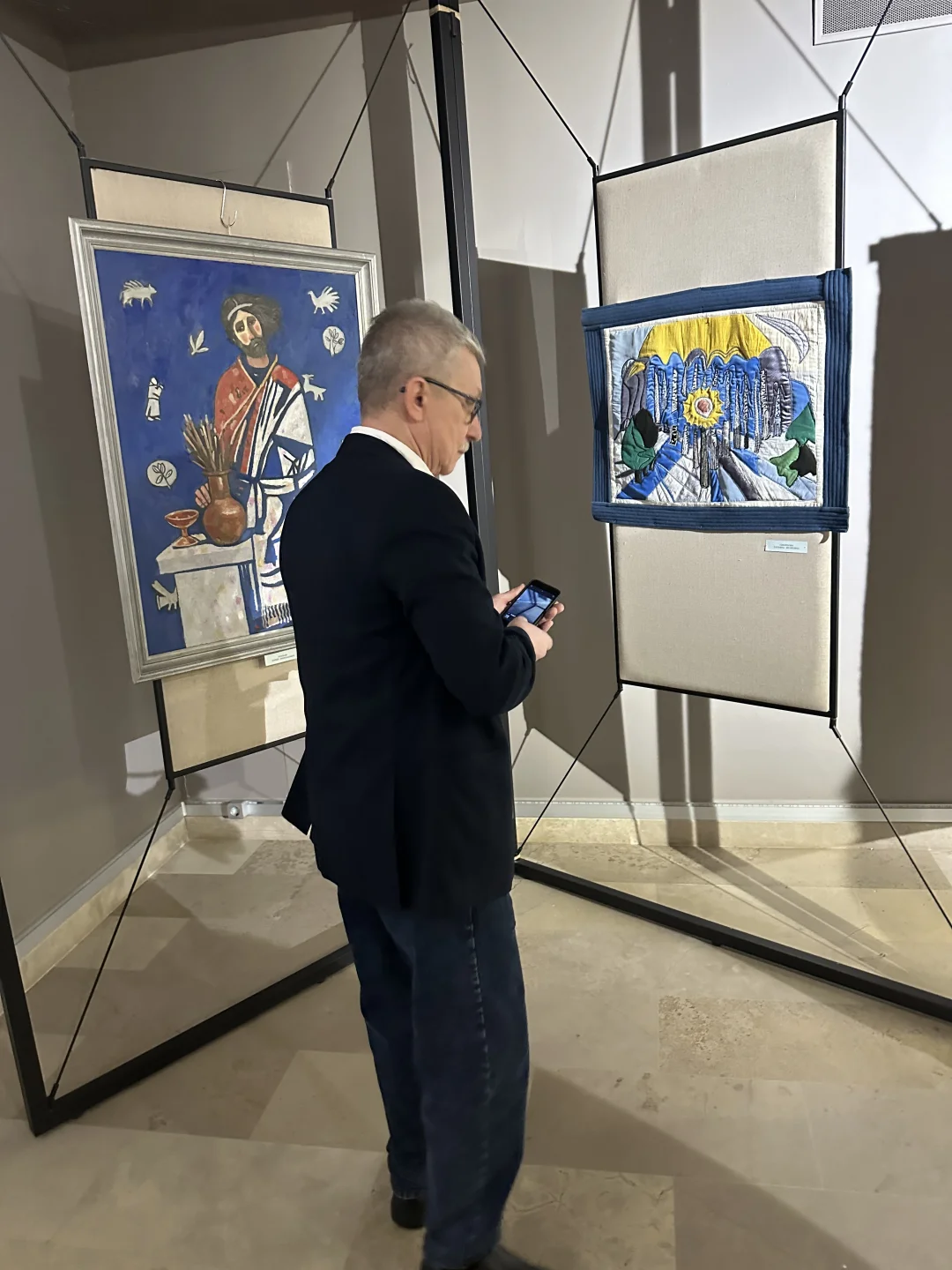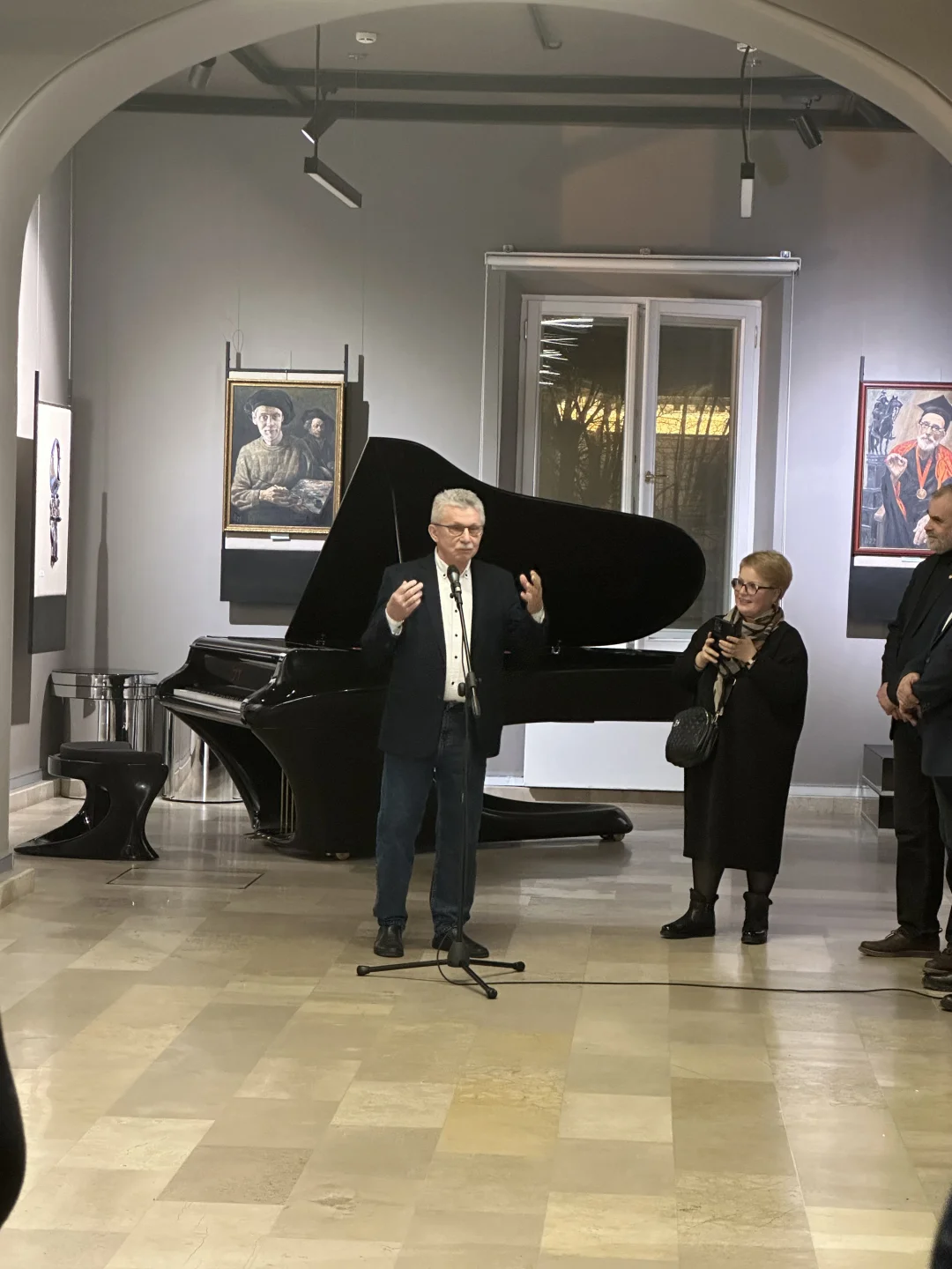 这是他在2024年参加莫斯科市的大型画展。 他笔下的四季被赋予灵魂。秋日林间,叶片如金箔般闪烁,树干苍劲如老者低语,每一笔都流淌着对故土的眷恋。