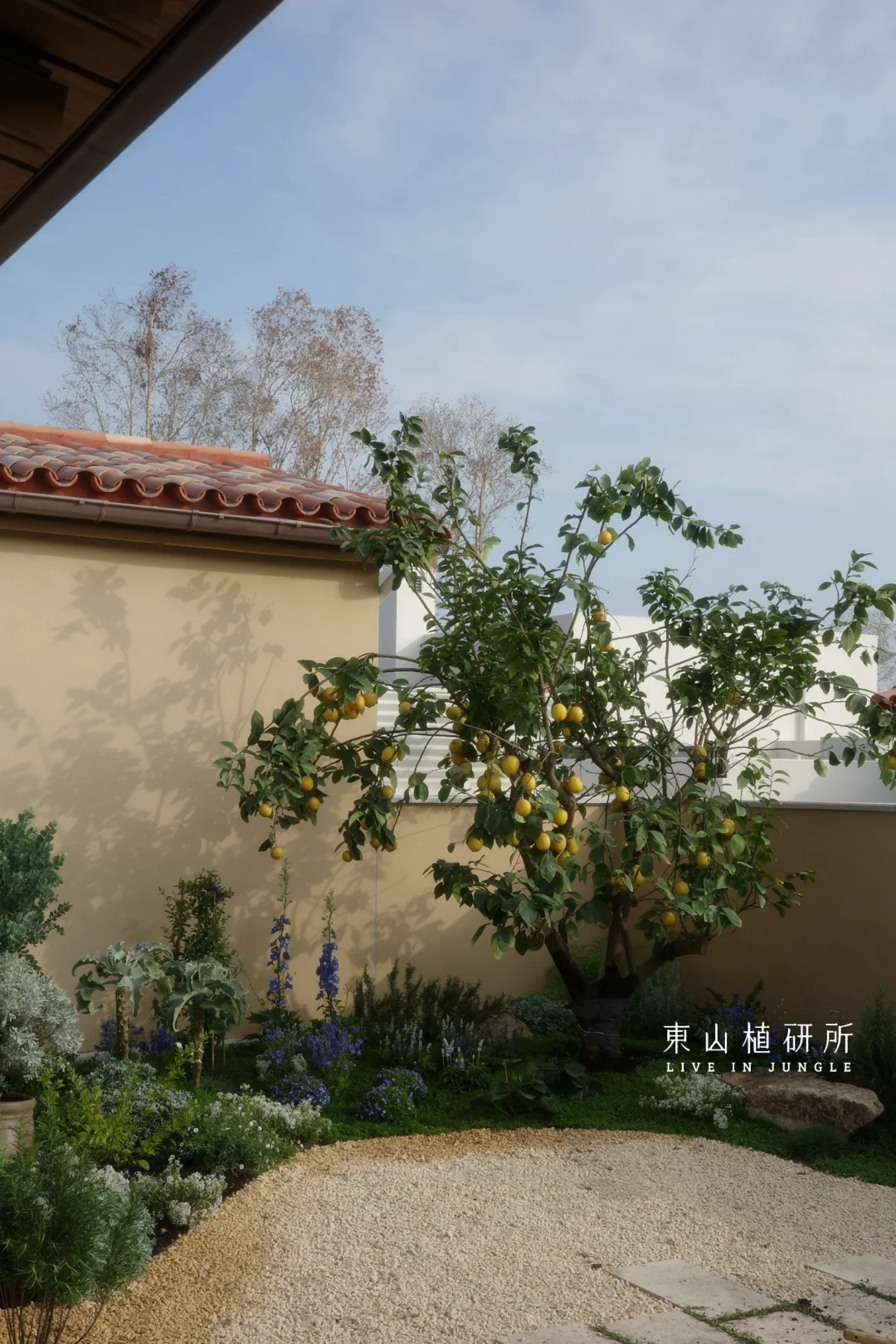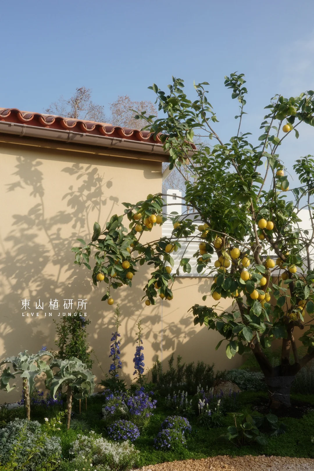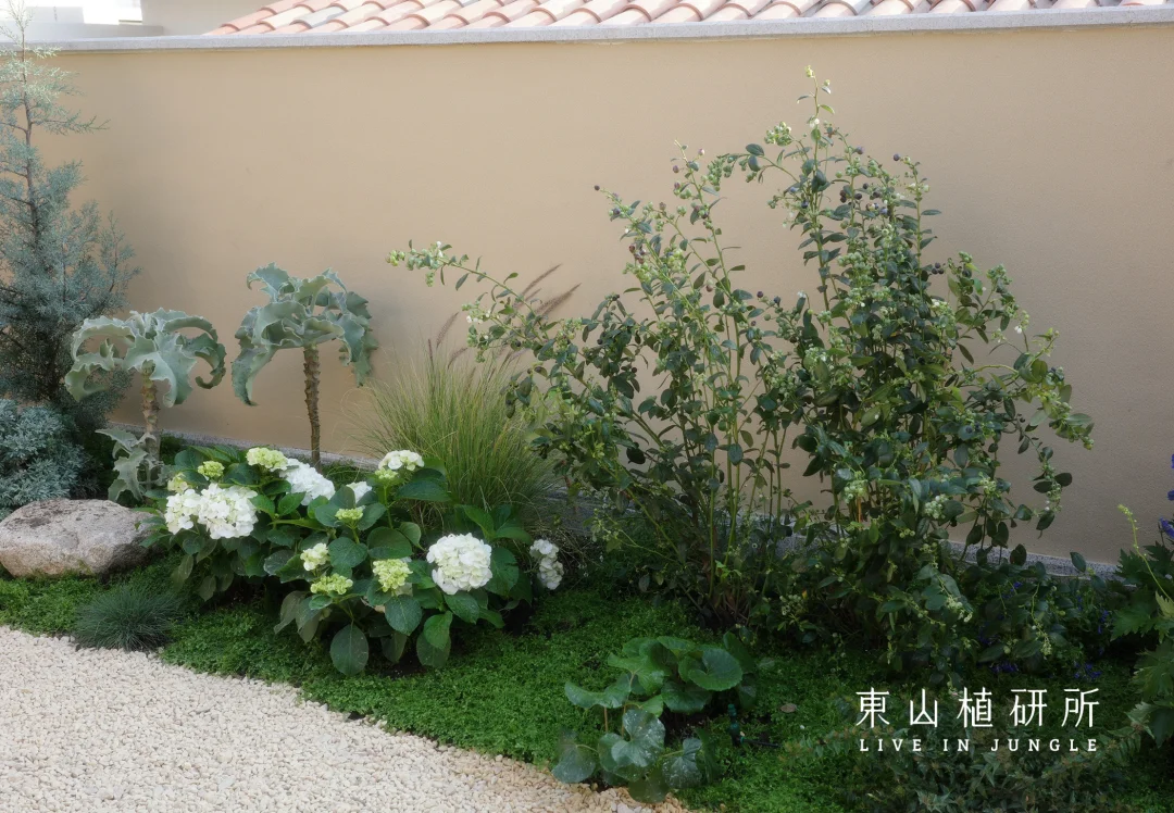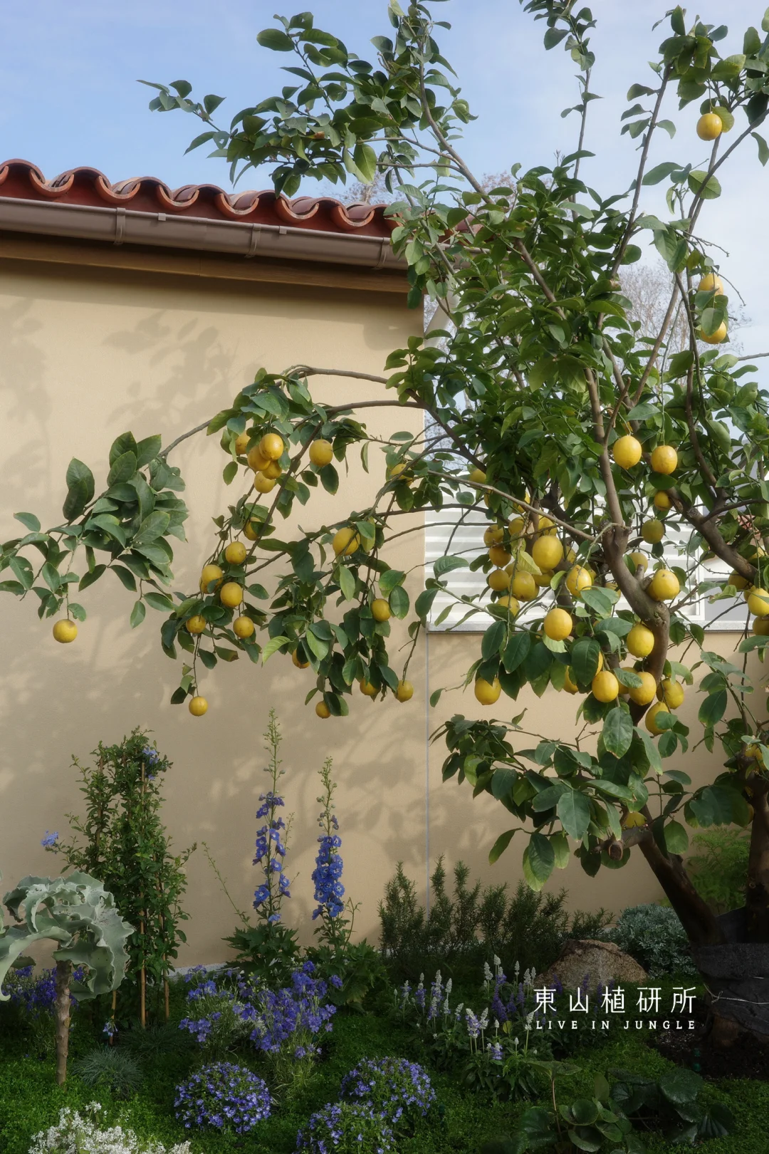 柠檬树是庭院的灵魂,春生叶、夏挂果,四季都是鲜活的自然雕塑,吸引着小鸟歇脚,蝴蝶穿梭。蓝紫色飞燕草、白色绣球等植物,灌木草本交织成境。高低错落间,是自然野趣的呼吸感,没有刻意的规整,只有原生态的鲜活。