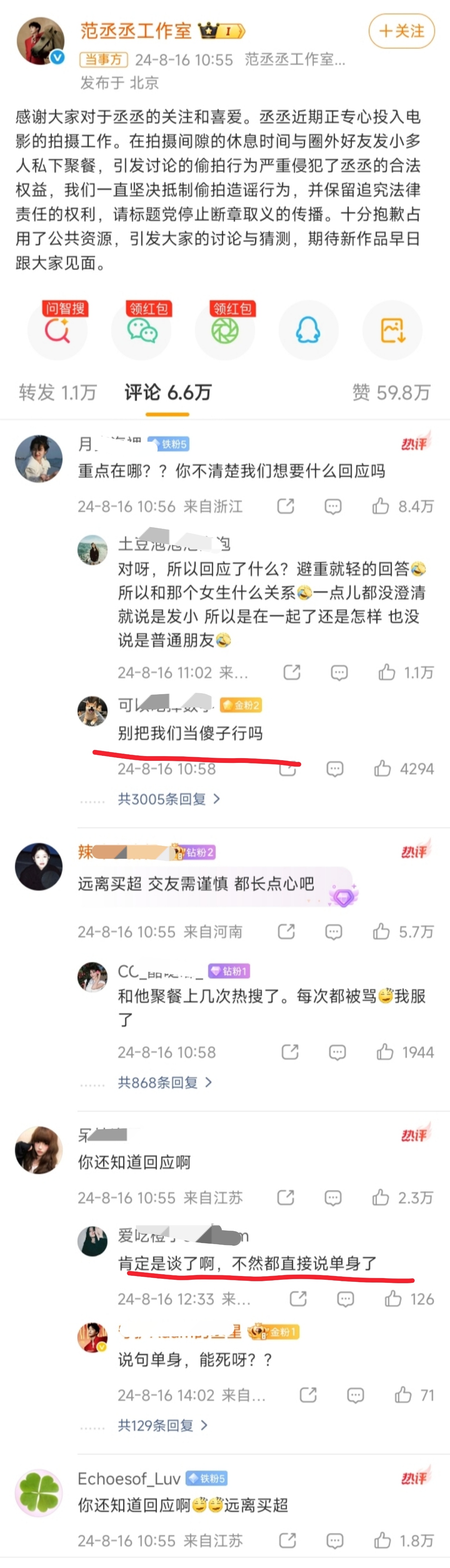 虽然每年都有他的传闻,但是团队每次都在干活啊。司晓迪那批绯闻艺人里也是很速度先回应的羡慕人家团队...