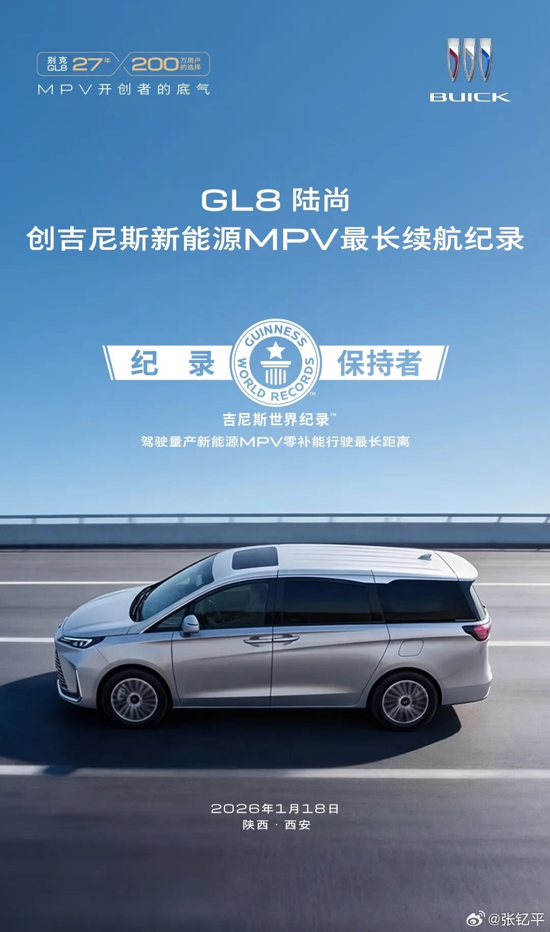GL8陆尚获吉尼斯新能源MPV最长续航记录,不补能跑了991.7km。