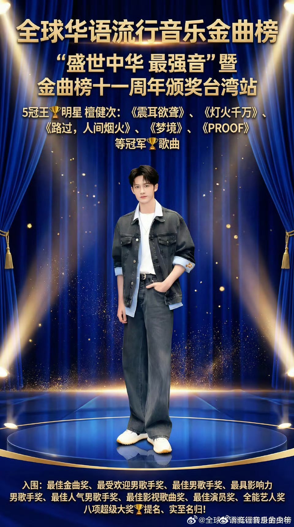 华语音乐打歌中心全球华语音乐流行榜 檀健次5冠王明星歌曲:《震耳欲聋》、《灯火千万》、《路过,人间烟火》、《梦境》、《PROOF》冠军🏆歌曲。八项超级大奖提名:入围最佳金曲奖、最受欢迎男歌手奖、最佳男歌手奖、最具影响力男歌手奖、最佳人气男歌手奖、最佳影视歌曲奖、最佳演员奖、全能艺人奖。 太优秀了实至名归檀健次何不同舟渡 期待檀健次何不同舟渡