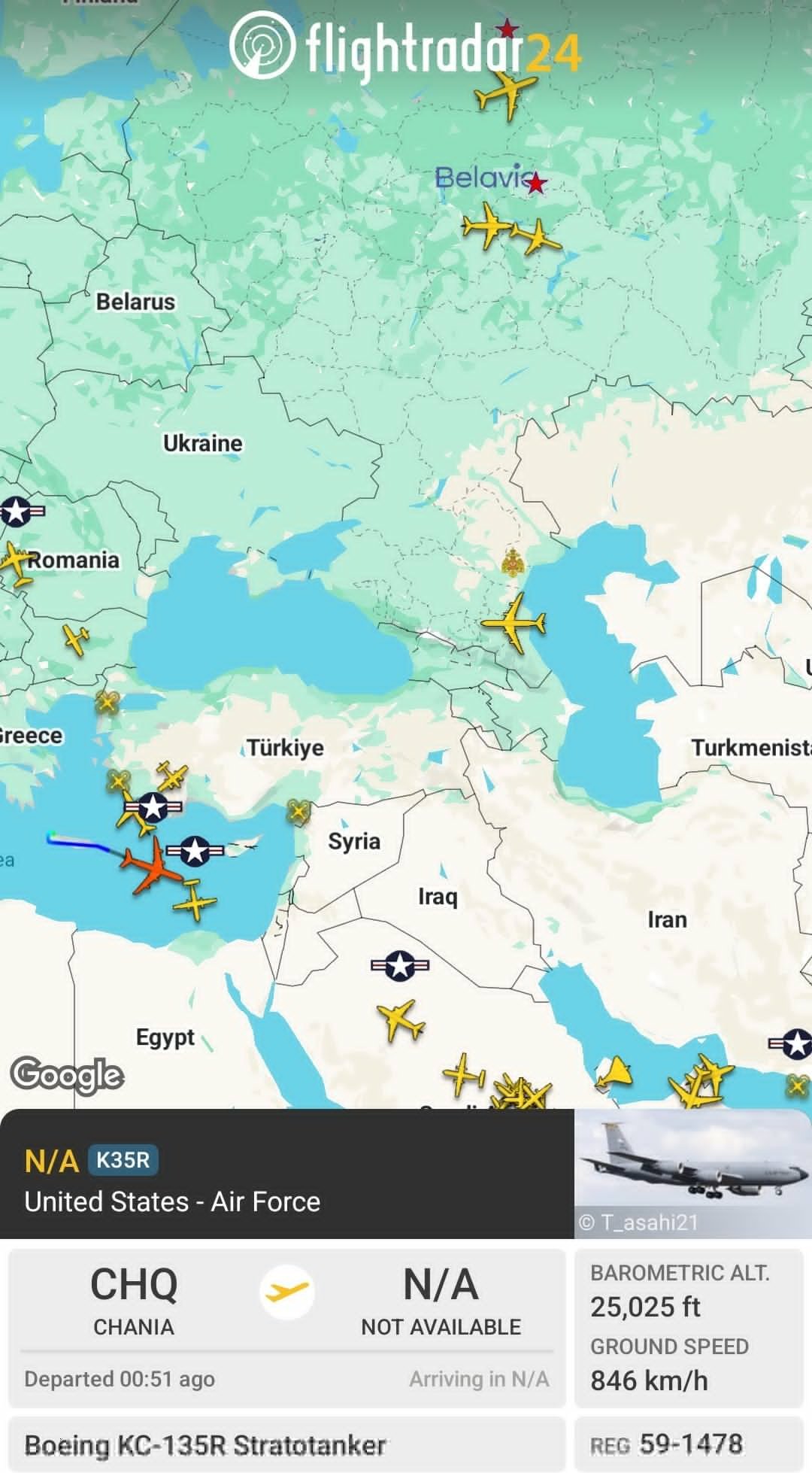 🔻F24数据显示:来自苏达湾的美国空军 KC-135R 同温层加油机启程飞往伊拉克方向。以色列宣布袭击伊朗美国对伊朗的空袭正在进行中海外新鲜事热点现场