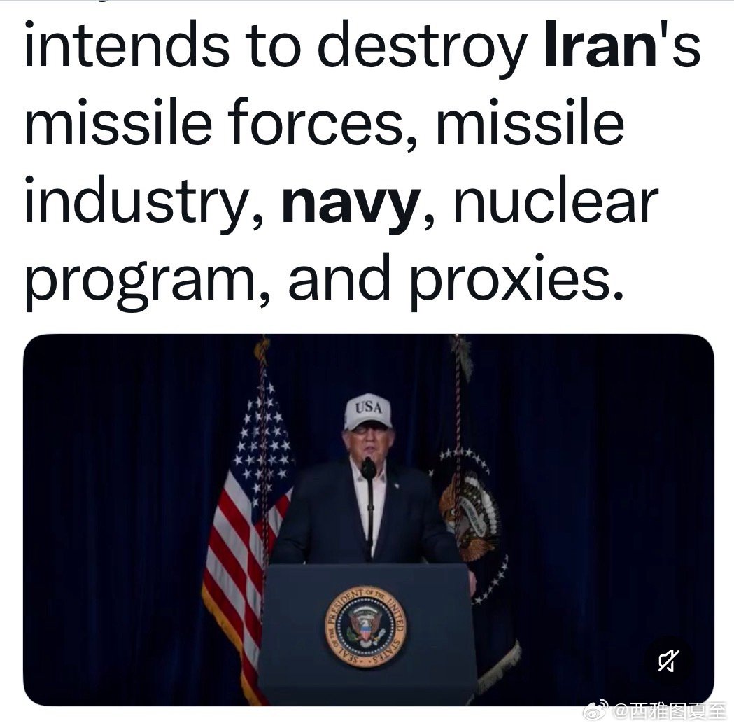 美国总统在讲话中,专门提到“会摧毁伊朗海军”