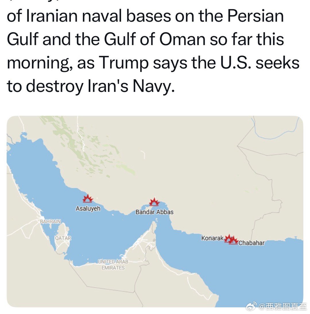 目前,伊朗位于波斯湾、阿曼湾的海军基地,正受到大规模空袭