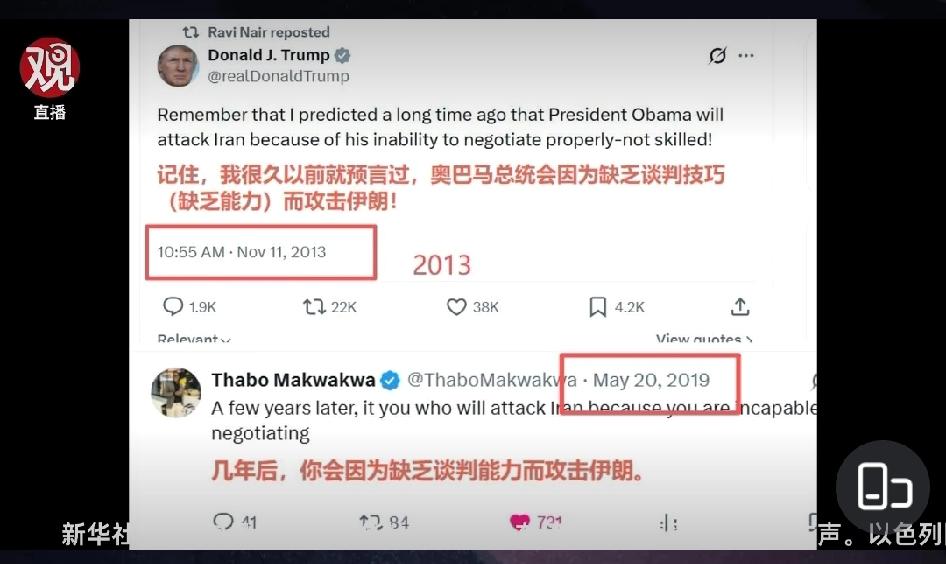笑死,老特自己打自己的脸。 2013年都时候,还是素人的老特曾经发文:奥巴马因为缺乏谈判技巧而攻击伊朗。 然后,2019年有网友回复他:几年后,你也会因为缺乏谈判能力攻击伊朗。 果然,这次谈了好几个礼拜,结果还是要打。