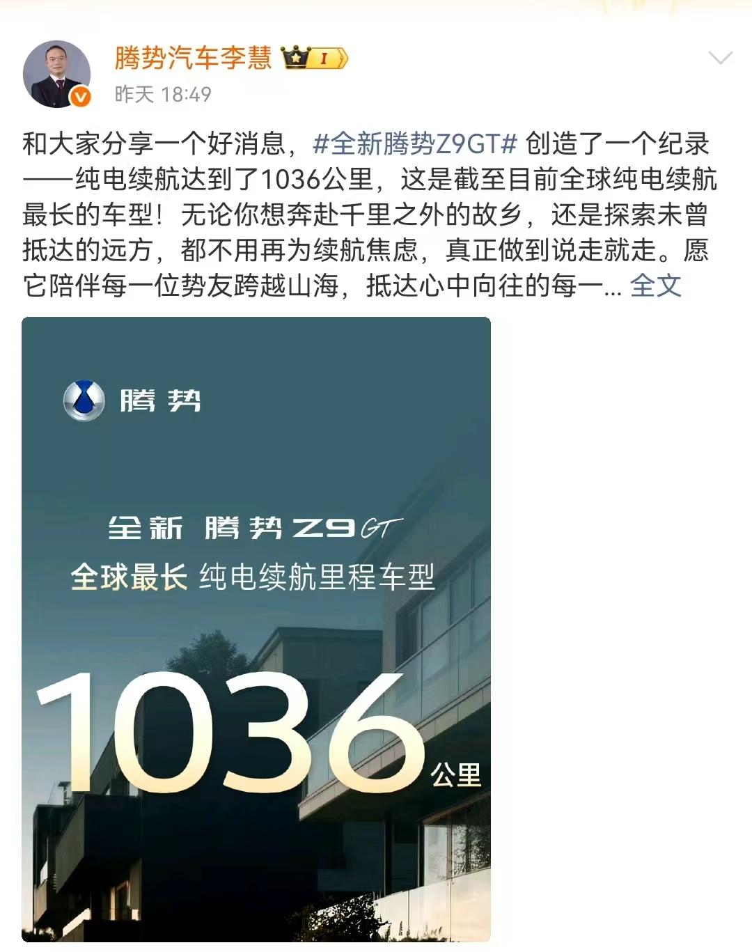 1036公里,电车续航再现重大突破! 也许大家对1000公里没有概念,差不多刚好是北京到南京的距离。 这也就意味着,你从首都出发,一路不用充电直接开到六朝古都;洛阳到西安往返两趟,还有余电去郑州吃碗烩面。 值得一提的是,这是截至目前全球纯电续航最长的量产车型——腾势Z9GT。 没错,这正是比亚迪的“阳谋”。 去年卖了460万辆车的比亚迪,2026年主打的就是一个“告别焦虑,超长续航。” 前不久,将旗下4款畅销插混车加推长续航版本,批量用上25.28kWh大容量插混专用刀片电池,纯电续航直接翻倍。 新能源车市场风云突变,国产新能源车“带头大哥”已经在卷纯电长续航了,这就是“技术为王”的成效。 更可喜的是,比亚迪前不久宣布固态电池有望2027年实现小批量生产。 “中国车王”,又要“杀疯”了!#纯电续航对比# #比亚迪#