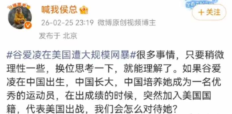 对于谷爱凌在美国遭大规模网暴一事,竟然有人喊要换位思考,说:“如果谷爱凌在中国出生,中国长大,中国培养她成为一名优秀的运动员,在出成绩的时候,突然加入美国国籍,代表美国出战,我们会怎么对待她?”