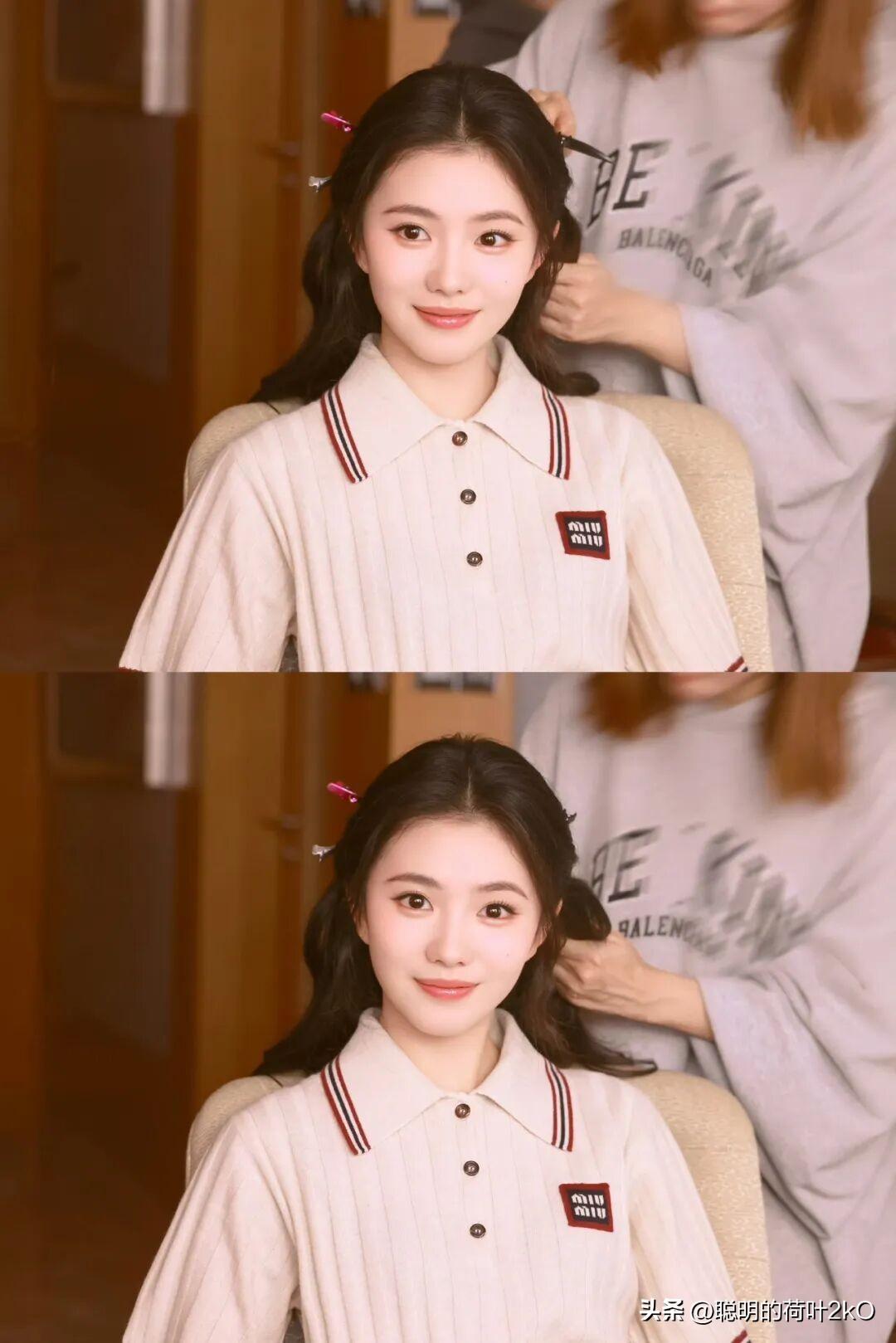 赵今麦的娃娃脸极具特色。那圆润的面庞,清澈的眼眸,笑起来宛如邻家小妹般纯真。这种