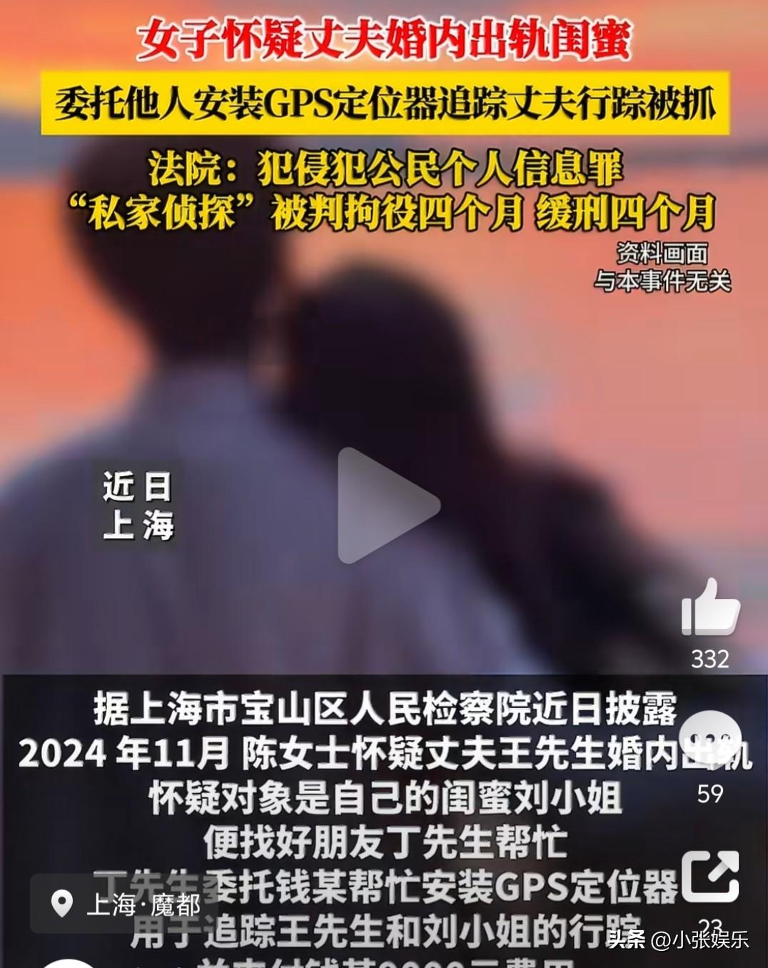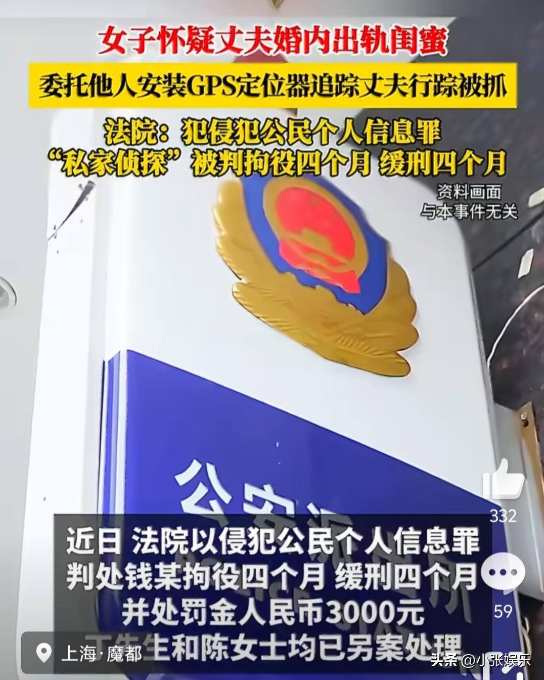 “真的太离谱了!”女子怀疑丈夫出轨闺蜜,竟花9000块雇人装GPS定位,本想抓现行,结果把自己送进法律风波,原配变违法者,看完让人又心疼又警醒! 上海陈女士发现丈夫和自己闺蜜走得很近,越想越不对劲,为拿到“实锤证据”,她托朋友找到“私家侦探”,花9000元在闺蜜车上偷偷装了磁吸定位器,24小时监控行踪,就等着捉奸在床。 谁料定位器突然故障,侦探上门更换时,被闺蜜当场抓包,对方直接报警。警方一查,非法跟踪、窃取个人信息,证据确凿。 法院判决:操作定位的钱某,以侵犯公民个人信息罪,被判拘役4个月、缓刑4个月、罚金3000元;出钱的陈女士与中间人,也被另案处理,难逃处罚。 网友吵翻了: 心疼她遭遇婚姻与友情双重背叛,但再委屈也不能违法。 不查丈夫查闺蜜,操作太迷,最后人财两空。 行踪轨迹属于敏感个人信息,未经允许私自安装定位、跟踪、窃取,均涉嫌违法犯罪,哪怕是夫妻、闺蜜,也不能越过隐私红线。非法证据法院不采信,只会让自己从受害者变成违法者。 婚姻里的猜忌最伤人,但维权必须守底线。用违法手段换真相,只会输得更彻底。 你觉得,伴侣出轨该合法取证,还是及时止损?花9000元装定位,到底值不值?