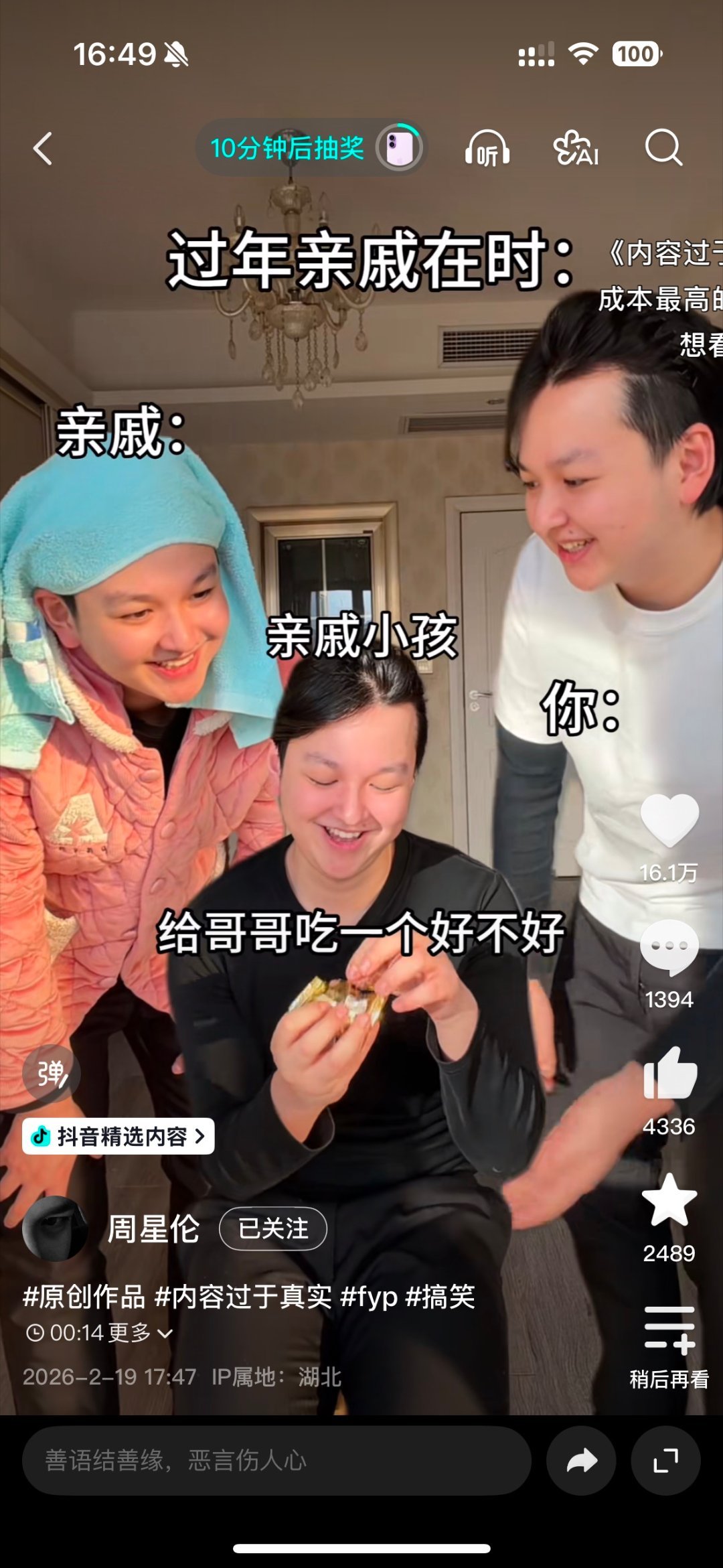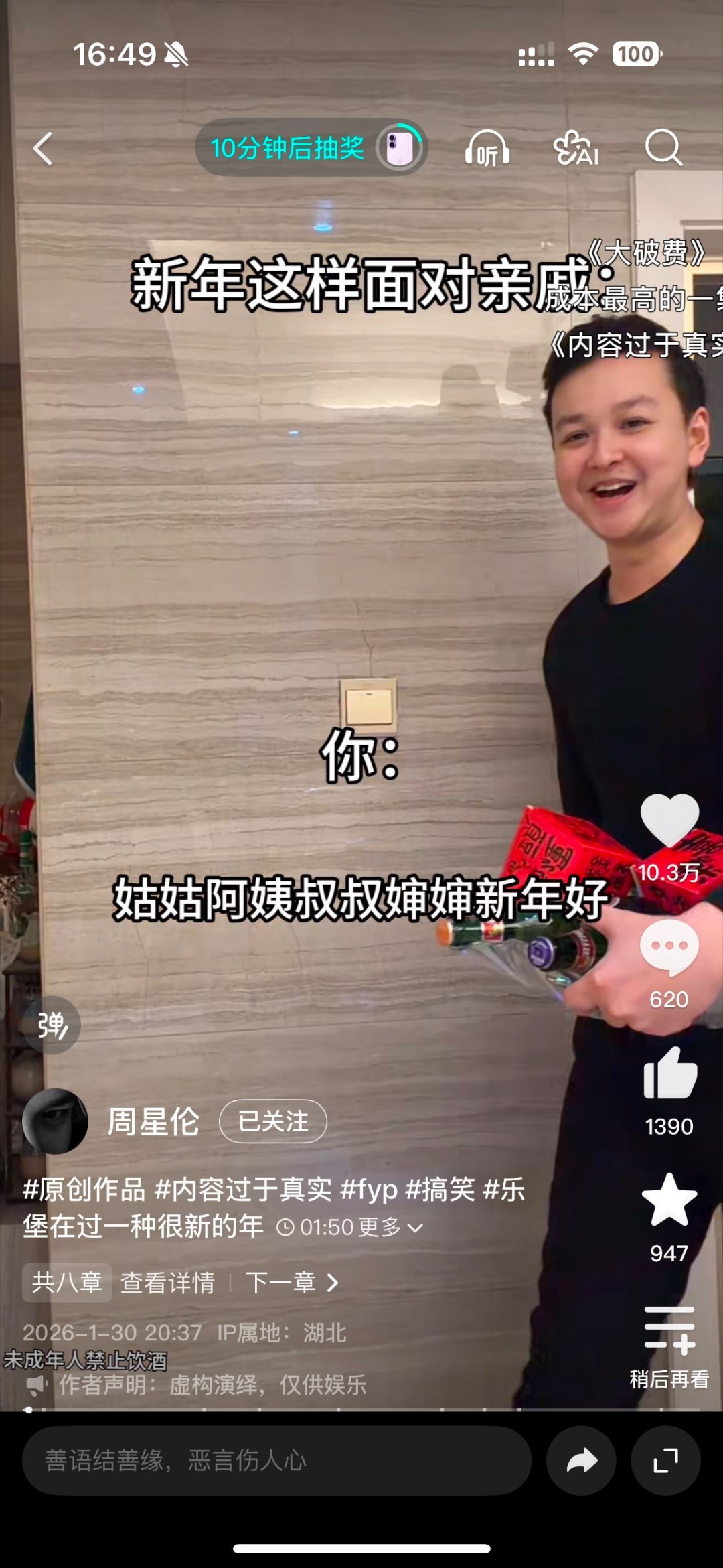节后的日子节奏陡然变快,反而让人想在碎片时间里找一点有质感的 “精神留白”。我最近的 “收心仪式”,是躲在 dy 精选 App 里看 app 这种干净清爽的环境里,看他轻松又有梗的输出,原本因为返岗焦躁的心情,一下子就被治愈放松了。这种刷完轻松解压、心情瞬间明亮的感觉,真的太适合节后找回状态。在刷这些优质内容的时候,我也意外发现了一个很有诚意的节后礼包:进入抖音精选 App 搜索【送福利宠粉春节】,新用户首抽必得礼物,奖池里涵盖了苹果、华为手机,还有很多人想要的游戏机。这份节后的第一份运气,大家真的可以去碰一碰。