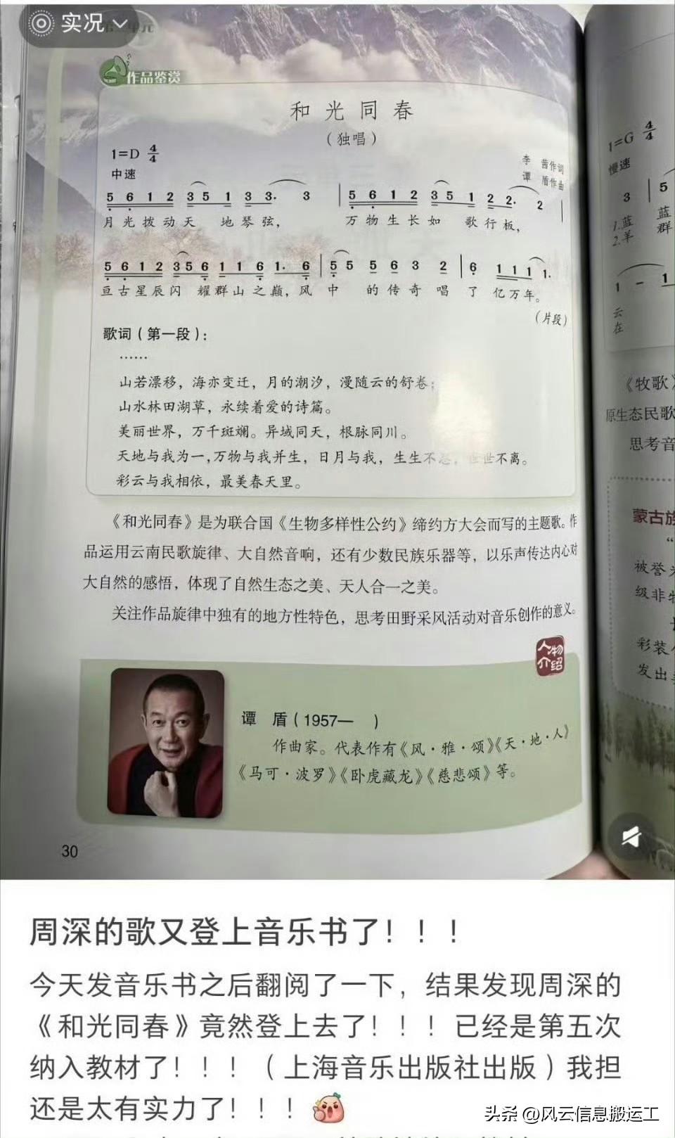 周深又有一首原唱歌曲被收录到教材了,截至目前,周深已经有五首原唱作品入九年义务教