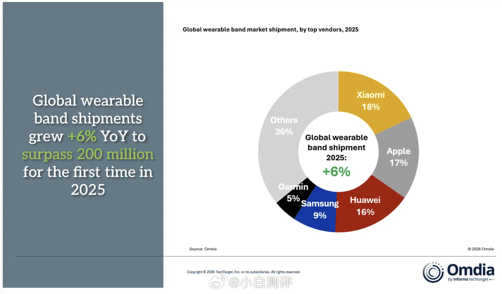 小米近几年首次拿下全球可穿戴第一?Omdia更新的2025年全球可穿戴设备份额:❶小米(18%)❷苹果(17%)❸华为(16%)❹三星(9%)❺佳明(5%)