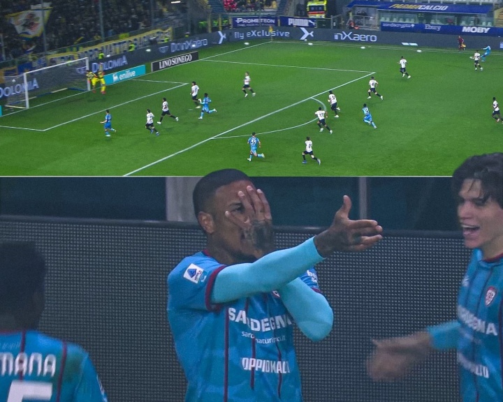 意甲第27轮,帕尔马主场1-1战平卡利亚里,本场比赛卡利亚里中场弗罗伦肖轰出一记
