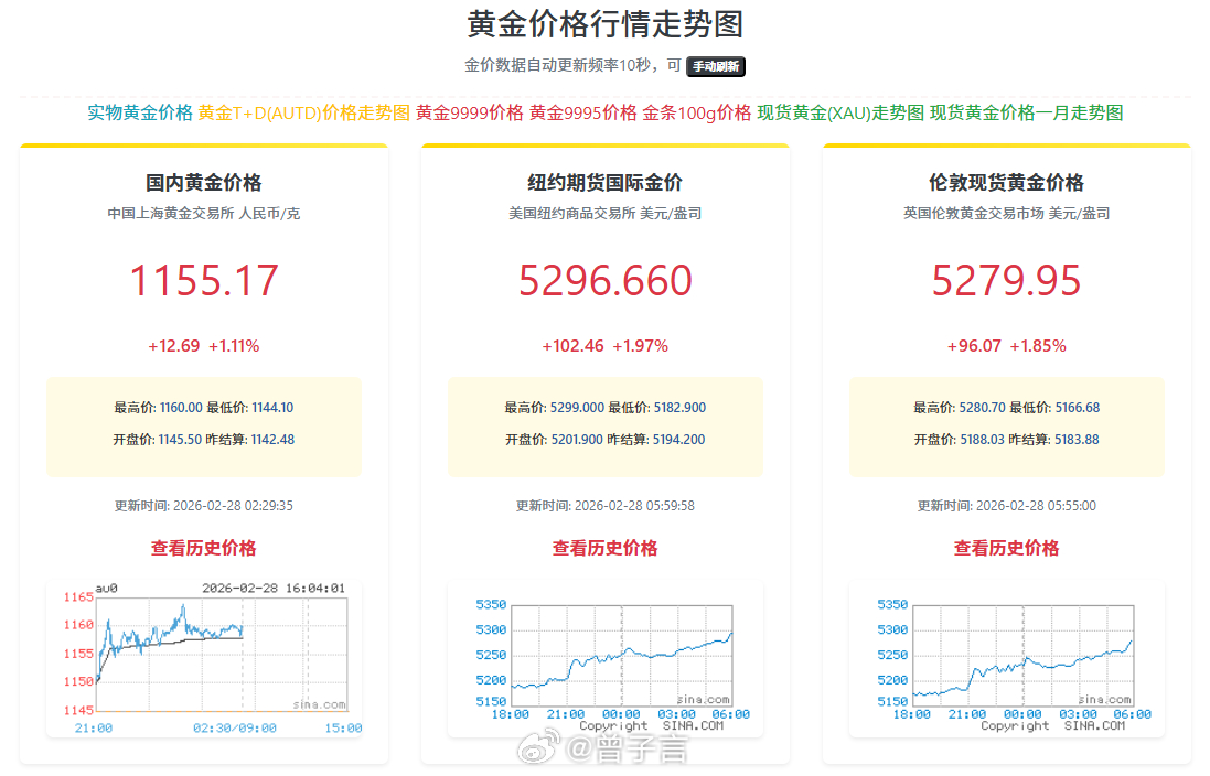 金价再次起飞,最高1160。以色列、美国、伊朗...金价不想涨都难了
