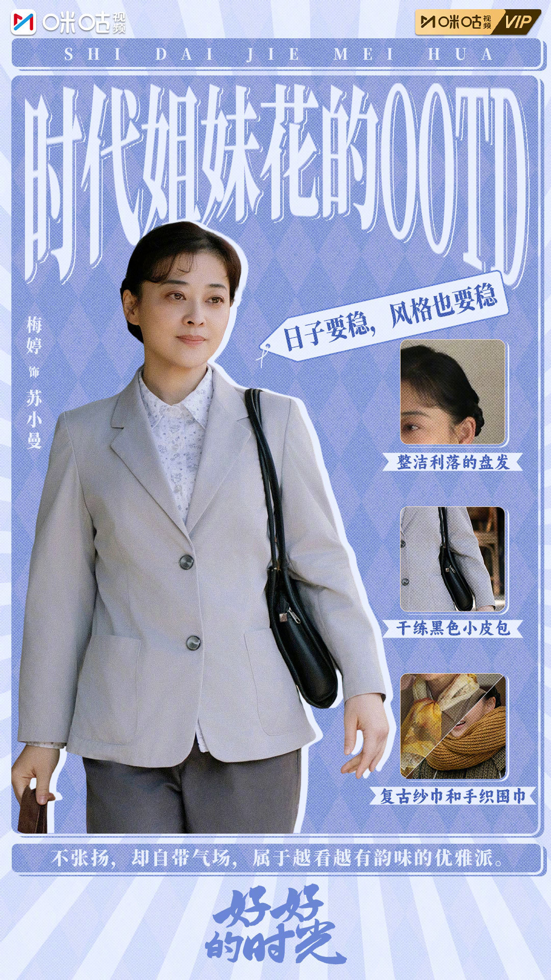 #上咪咕看好好的时光# #好好的时光# 时代姐妹花80年代OOTD大赏!苏小曼整洁盘发配黑色皮包,优雅大气超有范儿;庄好好波浪卷发搭喇叭裤,走在街上妥妥的焦点;叶爱花碎花领巾配浅黄衬衣,文艺氛围感拉满;王元媛双马尾搭粉色衬衫,青春灵动超减龄。你最pick哪一套呢~咪咕视频一键追剧:网页链接