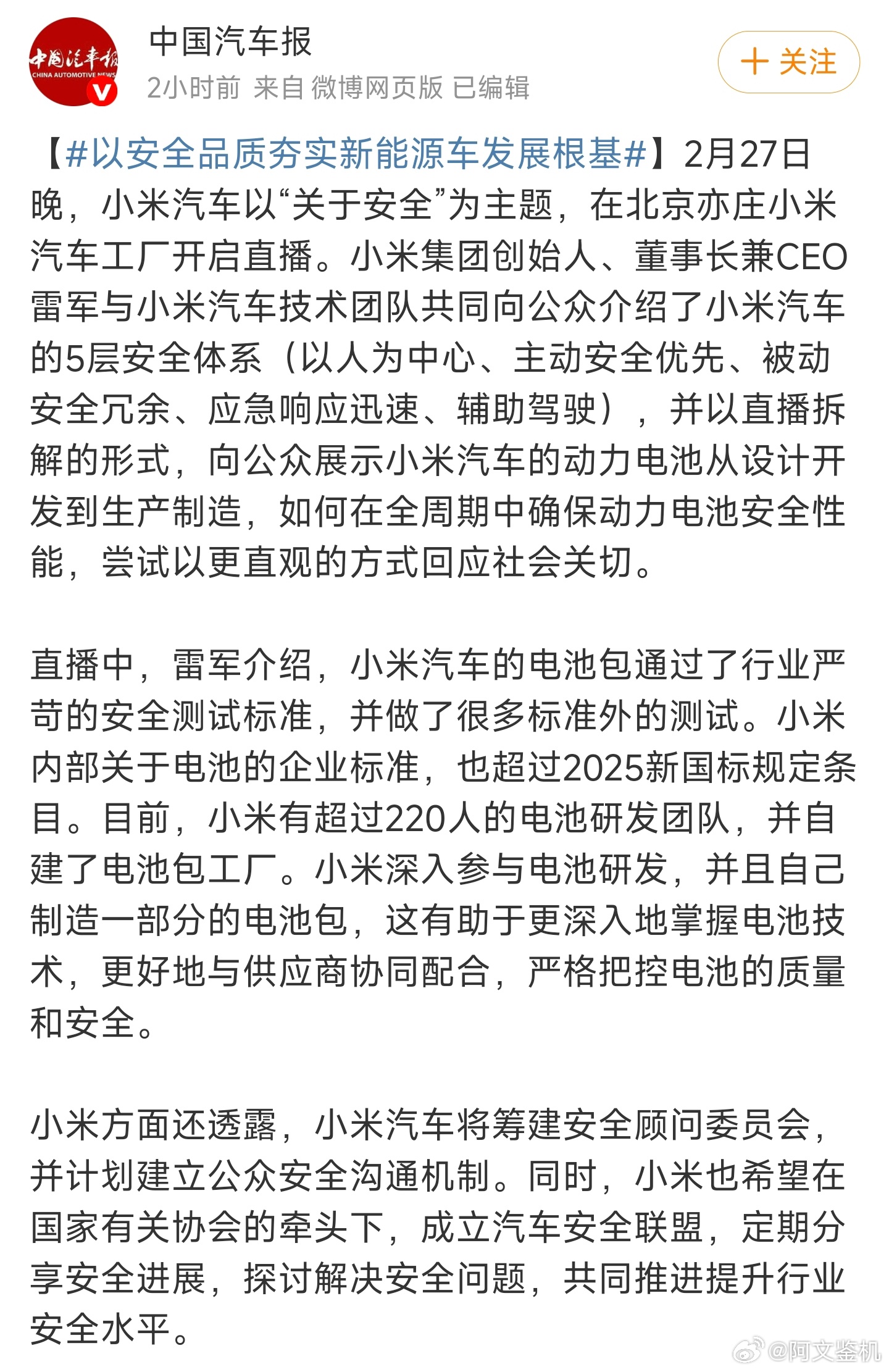 看惯了在各家在吹自己的车多智能,多漂亮的,能安安心心讲安全的真不多。小米这个“安全是基础,安全高于一切”的态度真的应该让车企们学习。