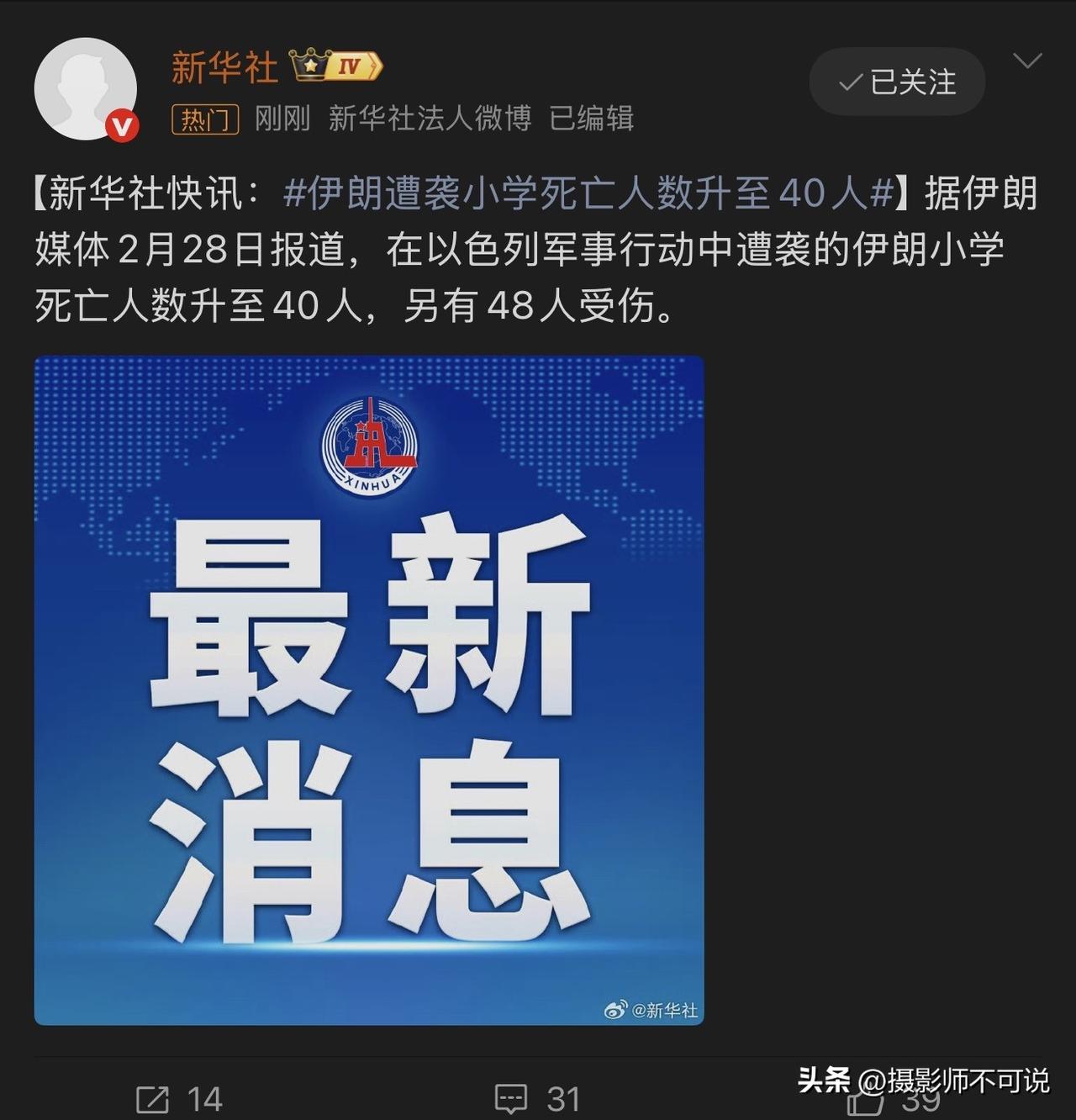 美以居然对小学下手,造成目前为止40人死亡和48人受伤,这种行为真的是赤裸裸的反人类罪行和战争罪行!很多人认为在这个世界上一切都是实力为尊,拳头大说什么就是什么,想动手就动手,其他人就只能干看着。咱们不妨放眼世界历史,那些“强到飘了、为所欲为、最后把自己玩死”的国家简直一抓一大把。远的不说,就是二战的德国和日本,初期还不是想揍谁就揍谁,后来如何不用多说了吧。再看看拿破仑前半生那是何等意气风发,横扫欧洲大陆,后来飘得不行非要远征俄罗斯,结果如何可以说是死无全尸、死后都不得安生吧,他的老二被人家割了以后还要到处拍卖展示。还有暴脾气亚述帝国、迦太基都是前车之鉴。所以,在此送美以一句话“国虽大、好战而亡!”记录我的2026