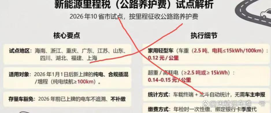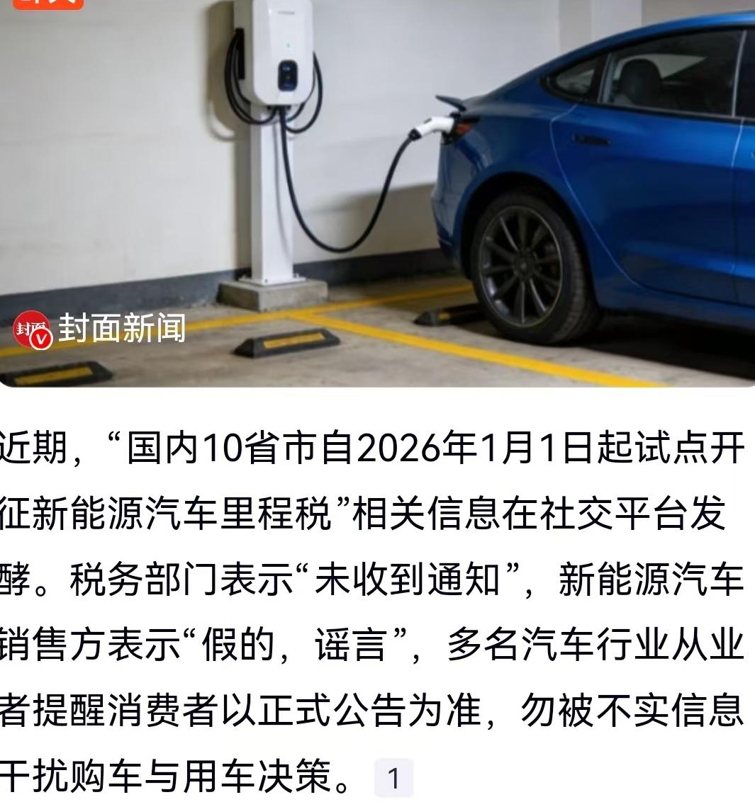 最近这几天,新能源车主圈子里炸开了锅,一条关于“收税”的消息让不少人心里直打鼓。事情的起因是一张在网上疯传的图片,内容说得有鼻子有眼:“国内10省市自2026年1月1日起试点开征新能源汽车里程税”。这消息一出来,立马成了社交平台的热议焦点,毕竟这关乎每一位车主的钱袋子。 咱们先来看看这张图到底说了啥。这张流传的截图里,细节那是相当“丰富”。上面白纸黑字写着,征收对象锁定为家用纯电车和合规增程式电车,基础费率统一为每公里0.12元。要是车型超标,费率还得往上涨,达到0.14元到0.15元每公里。更绝的是计费方式,说是要通过车载终端对接北斗系统,自动记录行驶里程,根本不需要车主手动申报,甚至把缴费方式和年检挂钩。这算盘打得是真响,这要是真的,以后开车每踩一脚油门,那可都是在烧钱啊。 对于这种看似“官方”的消息,车主们自然坐不住了。要是按每公里0.12元算,一年跑个两万公里,光这个税就得交2400元,这哪是里程税,简直就是给新能源车“穿小鞋”,原本省下的油钱岂不是又要吐出来?不过,大家先别急着慌,咱们得看看官方怎么说。 针对这一传闻,多地相关部门和行业内的反应非常迅速,而且口径出奇的一致——“没影的事儿”。税务部门的工作人员明确表示,“未收到通知”,这四个字算是给事件定了性。新能源汽车销售方更是直截了当,直言这是“假的,谣言”,甚至有销售调侃说,要是真收这税,车还怎么卖?多名汽车行业从业者也都站出来提醒消费者,一定要以正式公告为准,千万别被这种不实信息干扰了购车与用车的决策,别因为一个假消息就把提车计划给搁置了。 其实,咱们冷静下来分析分析,这所谓的“里程税”传闻,漏洞还是挺明显的。现在国家大力推广新能源,正是如火如荼的时候,虽然燃油车的养路费是个问题,但直接搞个“里程税”替代,目前的时机和技术条件未必成熟。2月27日,新浪财经、快科技等多家权威媒体也纷纷辟谣,证实了这就是一则网络谣言。所谓的“2026年1月1日试点”、“0.12元费率”,纯属无稽之谈。 这种谣言之所以能传得这么广,无非是抓住了车主们对“用车成本”敏感的心理。从“电费上涨”到“购置税减免政策调整”,每一次风吹草动都能牵动大家的神经。这次事件也给咱们提了个醒,网络时代信息杂乱,看着越像那么回事儿的“红头文件”,越得多留个心眼。 总而言之,各位新能源车主或者准备买电车的朋友,把心放肚子里。目前的政策环境依然是对新能源友好的,不要因为网上一张来路不明的图片就乱了阵脚。买车是为了方便生活,是为了享受“信风也信光”的自由,只要官方没有发布正式文件,咱该提车提车,该开车开车。以后遇到这种所谓的“重磅消息”,先等一等官方的回应,别让谣言成了你通往自由之路上的绊脚石。 以上内容仅供参考和借鉴