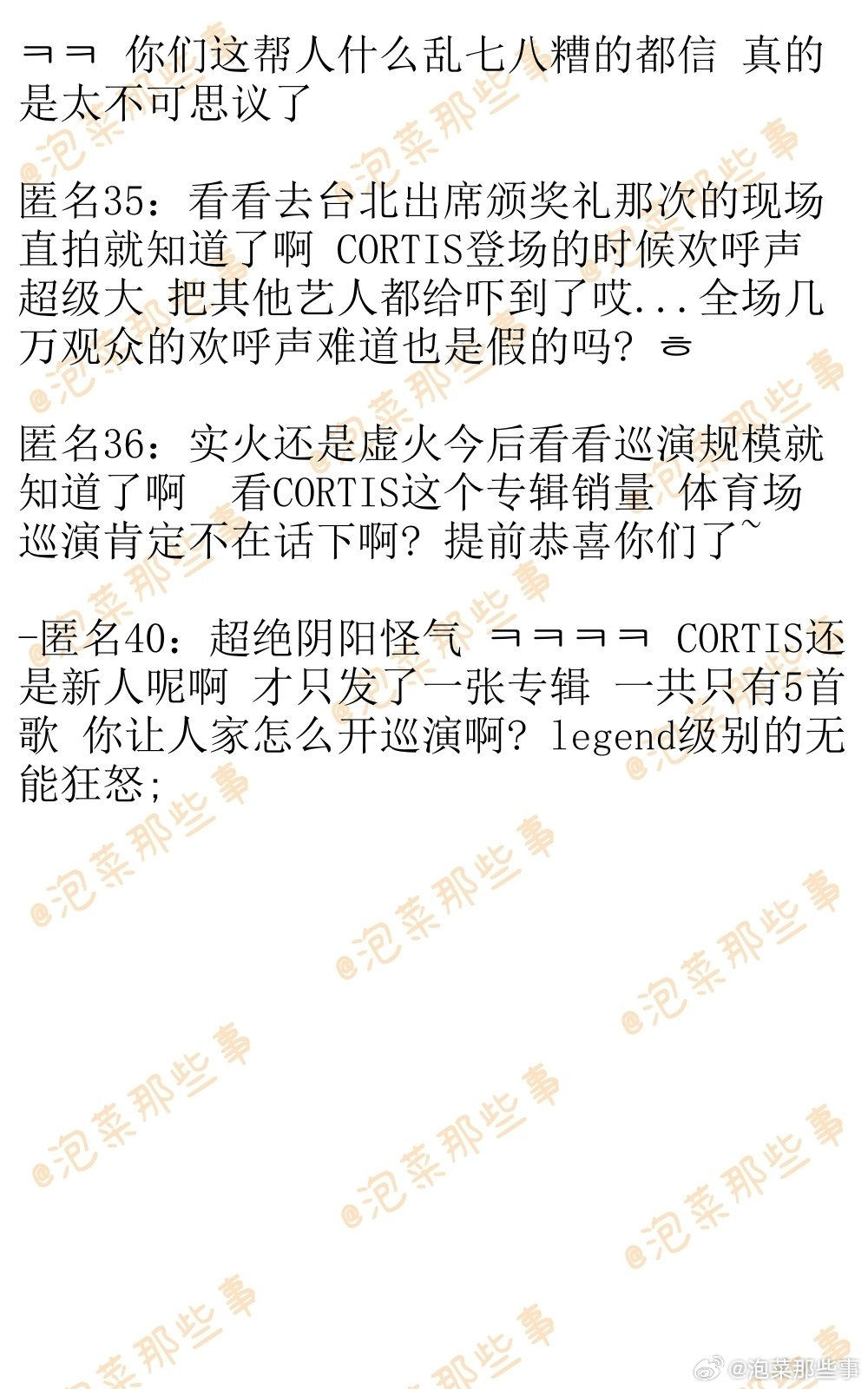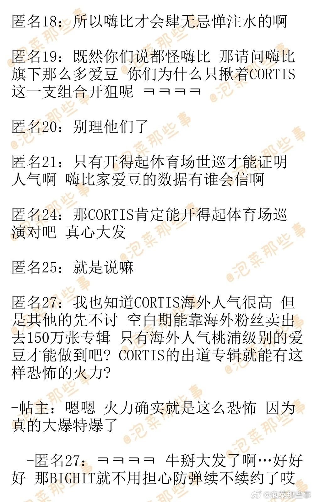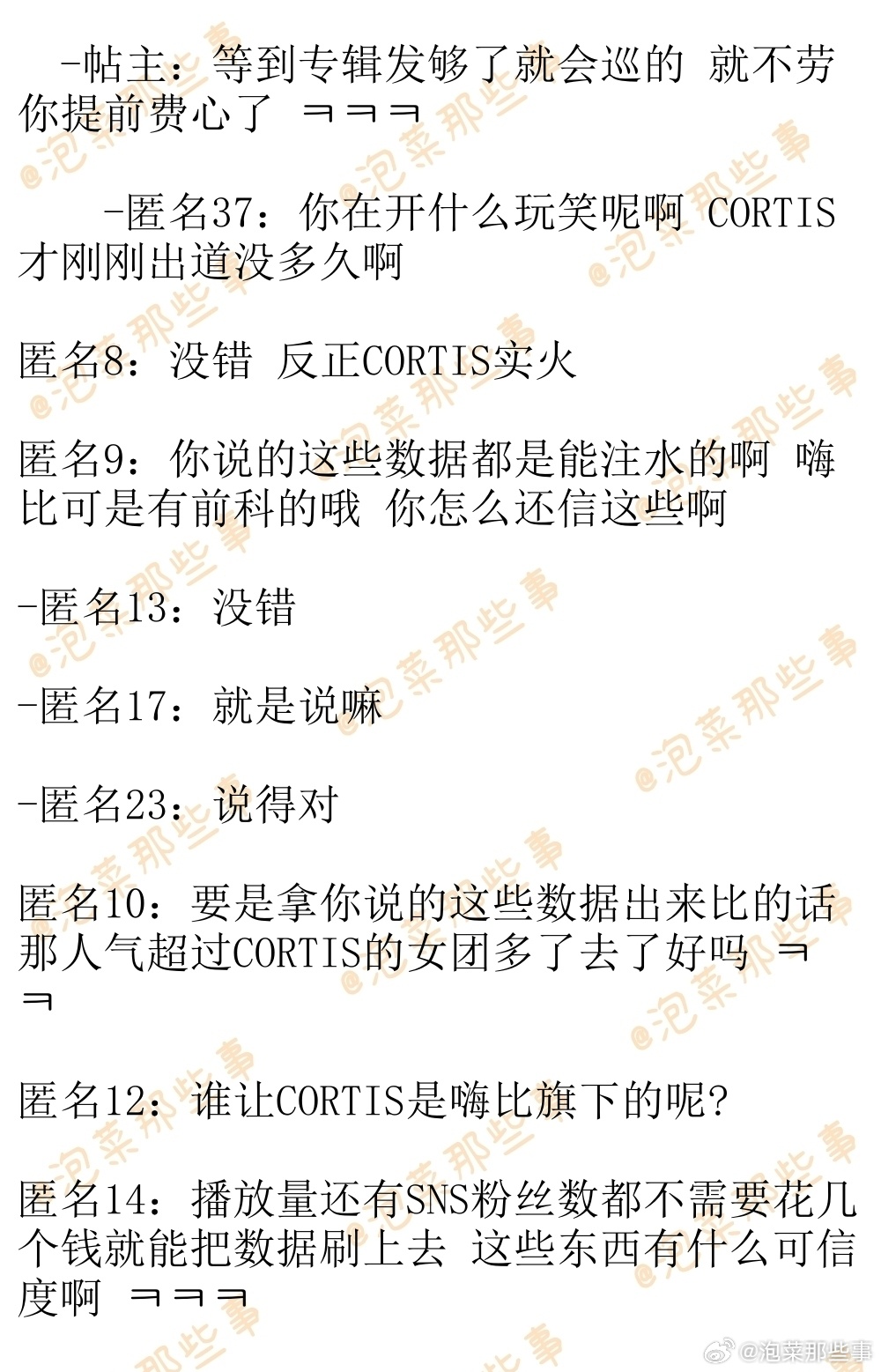 🔥韩网热帖评论翻译🔥CORTIS各项数据就是超级能打 你们再怎么尬踩也没用啊韩网原帖帖主称:CORTIS专辑销量,音源,油管播放量,SNS粉丝数 所有数据都很能打 你们咬牙切齿尬踩CORTIS海外没有人气没火到那种程度 又能改变什么呢 ㅋㅋㅋcr.instiz