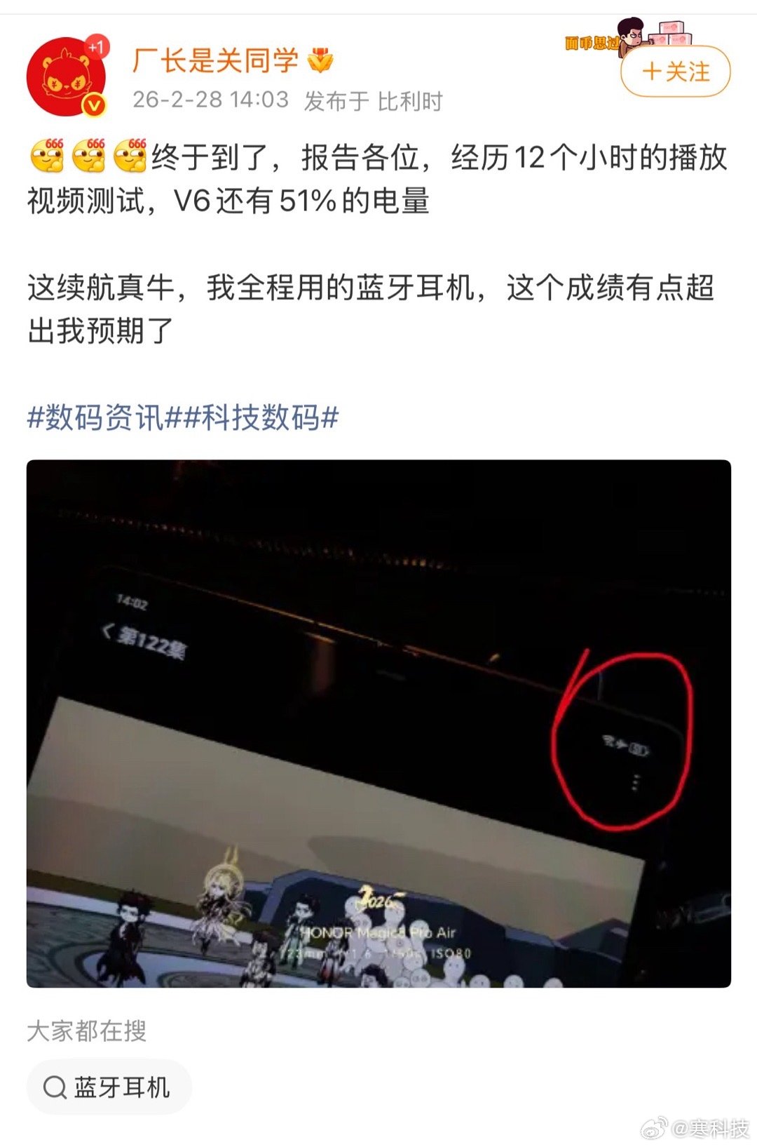 荣耀Magic V6这续航是真的顶,这次电池虽然更薄更大,但能耗控制也更好了,硅含量也提上去了,看来不光是堆电池,优化也下了功夫。