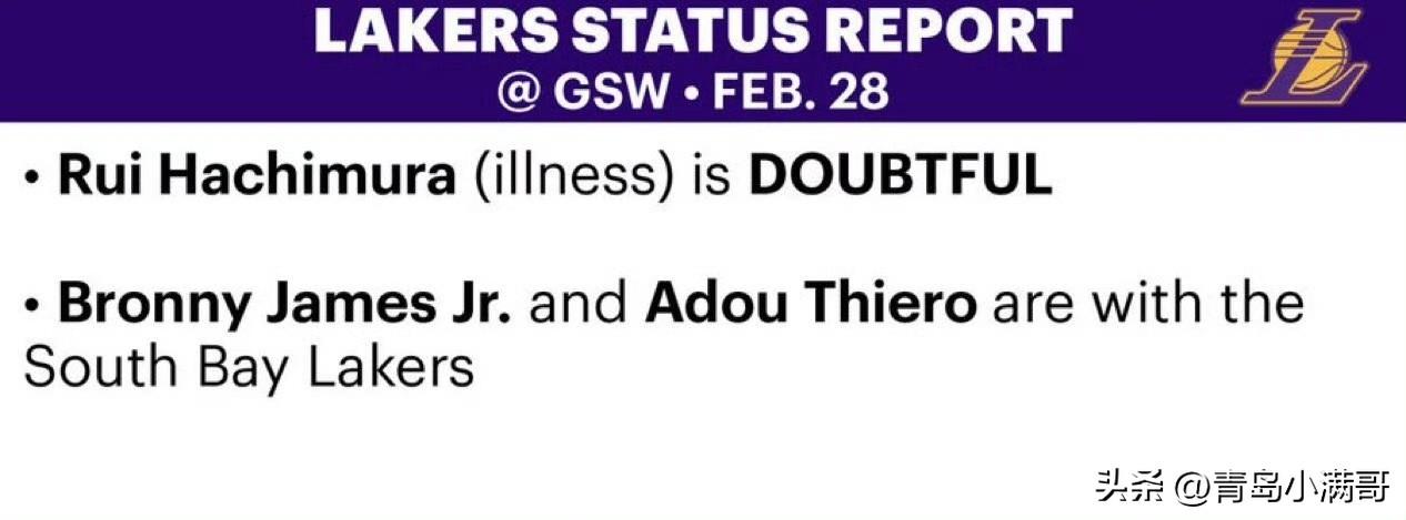 湖人vs勇士比赛预告!!!湖人对阵勇士比赛预测,湖人被看衰! 北京时间3月1号,新的一个月份开始了,湖人迎来了3月份的第一场比赛,对方就是老对手勇士队,这两支球队也是太熟悉彼此了,一起来看下比赛预告吧。 湖人伤病情况: 八村大概率缺阵,布朗尼和蒂耶罗也留在发展联盟。 勇士伤病情况: 波尔津吉斯出战成疑,追梦-格林伤病管理大概率出战,库里、巴特勒、库里弟弟都因伤无法出战。 目前从ESPN给出的预测结果来看,湖人只有45%,但是作为客场作战,竟然给湖人开出了-3.5,勇士的胜率反而高于湖人,这也是很令人费解。威兰达AIR权益价13.78万 湖人 金州勇士 湖人赛程 nba预测 勇士队