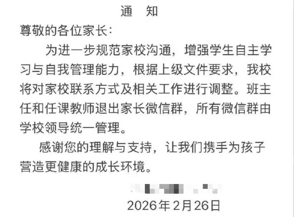 啥意思?要求班主任和任课老师退出家长微信群,所有微信群由学校领导统一管理。