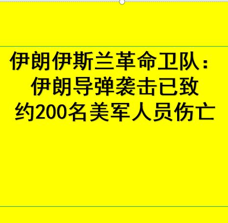 伊朗伊斯兰革命卫队:伊朗导弹袭击已致约200名美军人员伤亡!美以还没公布战果,伊朗先公布了,如果属实,伊朗这导弹真是厉害了!只是人数怎么统计出来的?伊朗还没有远程侦测统计到人的能力吧?希望真的,不是革命卫队自己口嗨!