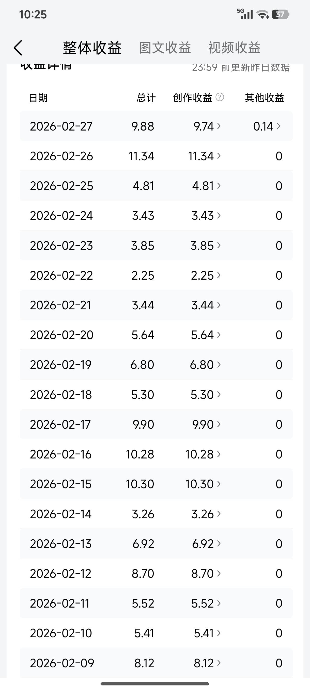 今天是2月28号,2月的最后一天,这一个月就像一场“战斗”,咱完美收官啦!辛苦一个月,也收入了100多块,就像挖到了一小罐“宝藏”。 最开心的就是看到每天的创作收益。今天6.6万阅读量有9块,不过收益低,就像小马拉大车,主要是总阅读量太少。 接下来,我打算好好规划创作方向。分析阅读量高的作品,学学人家咋抓住读者眼球的。拓展创作领域,不局限在熟悉的“一亩三分地”。多和其他创作者交流,取取经,少走弯路。 !