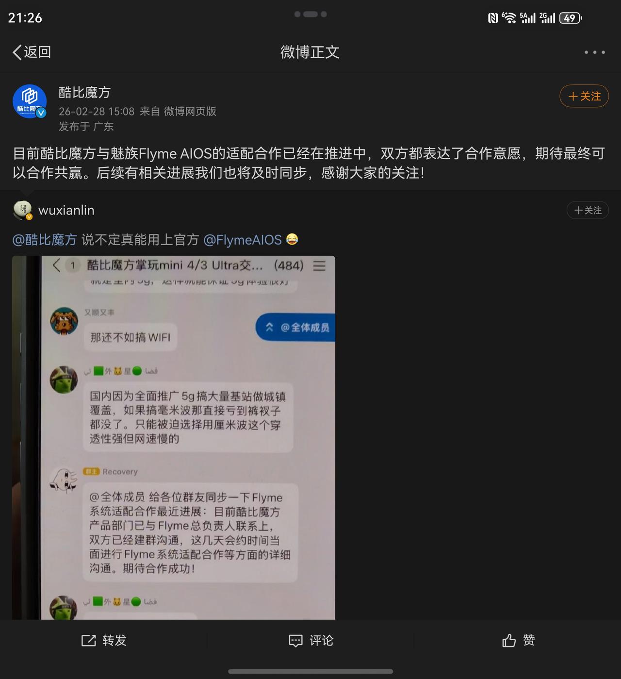 酷比魔方官方确认:平板产品部门已经与魅族Flyme负责人建联,这几天就会约时间当面沟通系统适配合作相关事宜。 这才哪到哪,酷比魔方就如此着急官宣,感觉是想先搭车吃一波流量?大家觉得会有戏吗? 曾经索尼手机也与魅族Flyme有过系统级的合作,尽管并非直接使用FlymeOS,但超过10款内置应用是由魅族提供相关服务。可惜的是双方的携手成效甚微,如今索尼手机已经退出中国内地市场,魅族手机在国内也按下了暂停键。 话说真的好久没接触到酷比魔方的产品了,不知道现在的体验如何了?大家有用过吗?话说为啥酷比魔方平板一直难打入主流市场呢?