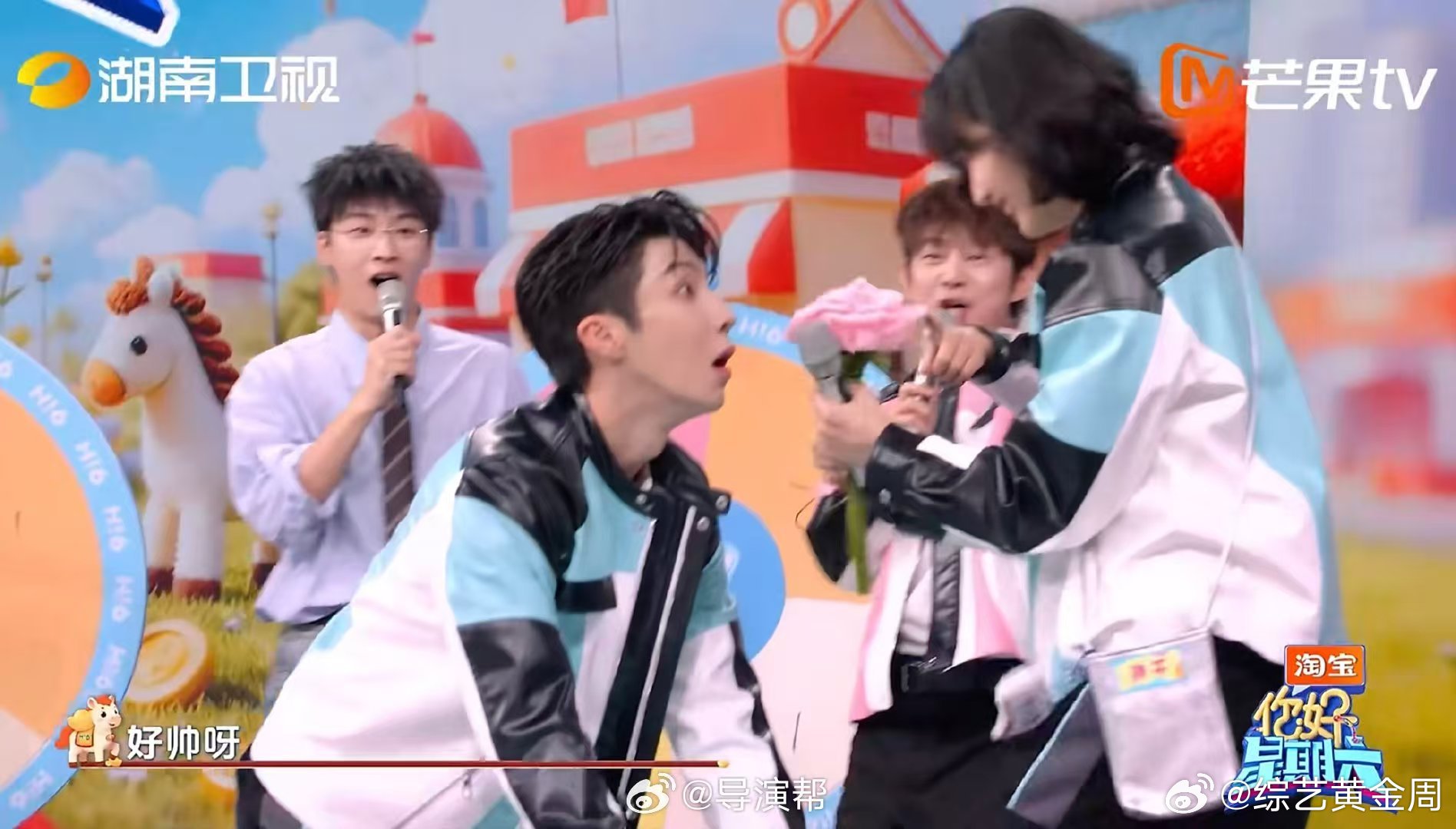 高瀚宇这一跳帅呆了你好星期六被高瀚宇这一跳狠狠圈粉!游戏中跳跃拿花送孙千,腾空瞬间张力拉满,击飞花朵接力太有综艺感!