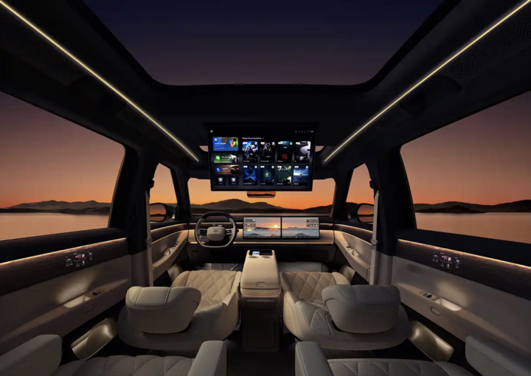 双联屏、后排吸顶大屏、环抱式座舱...非常之中国特色了。
