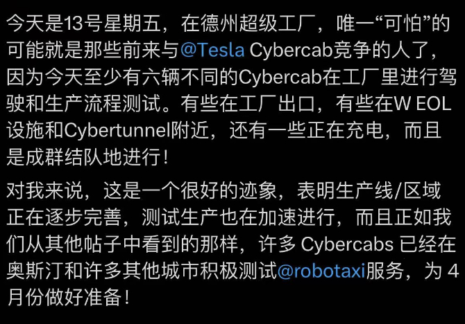 Giga Texas 厂里的Cybercab 是真不少,其中 6 辆是用来做碰撞测试的。