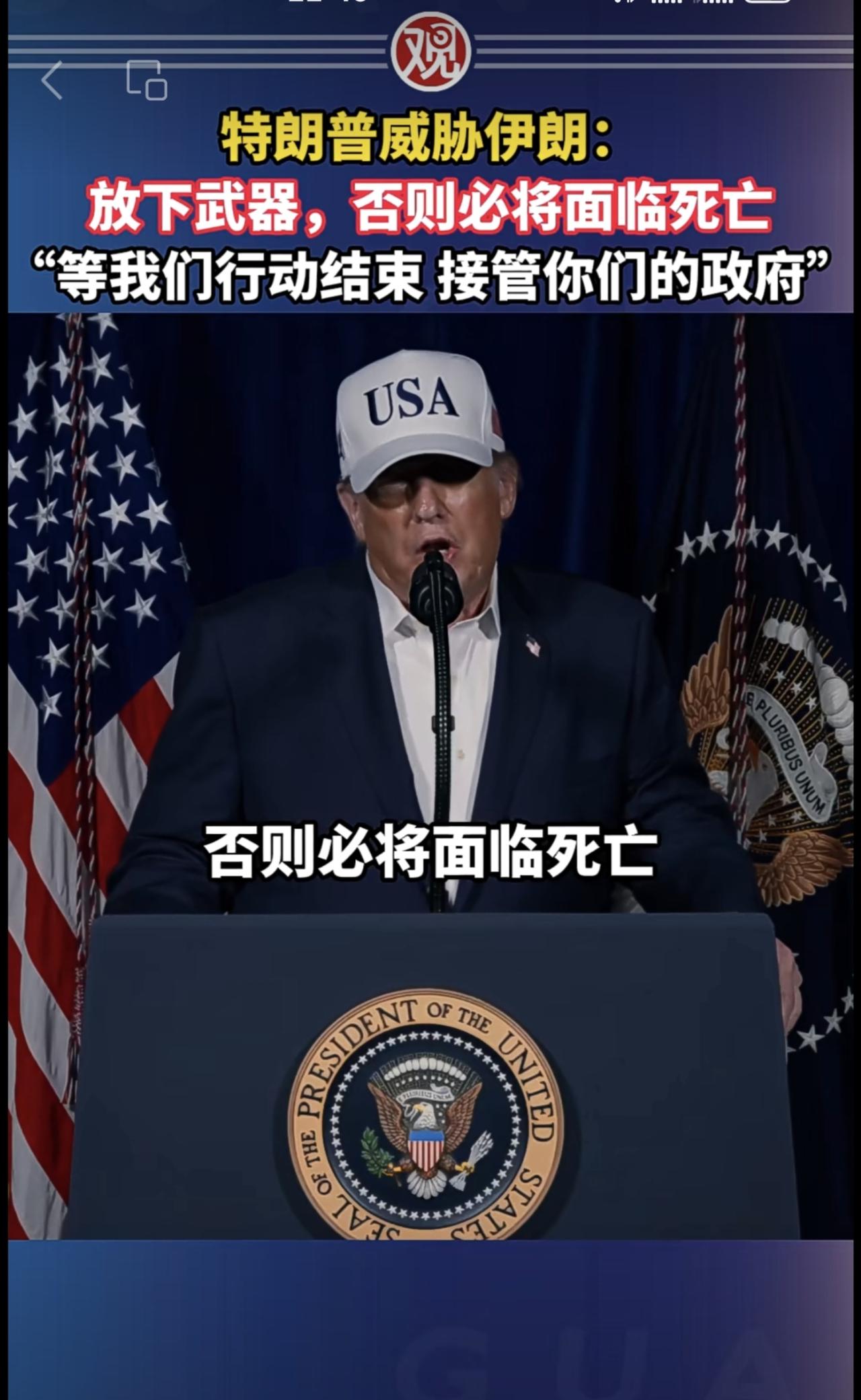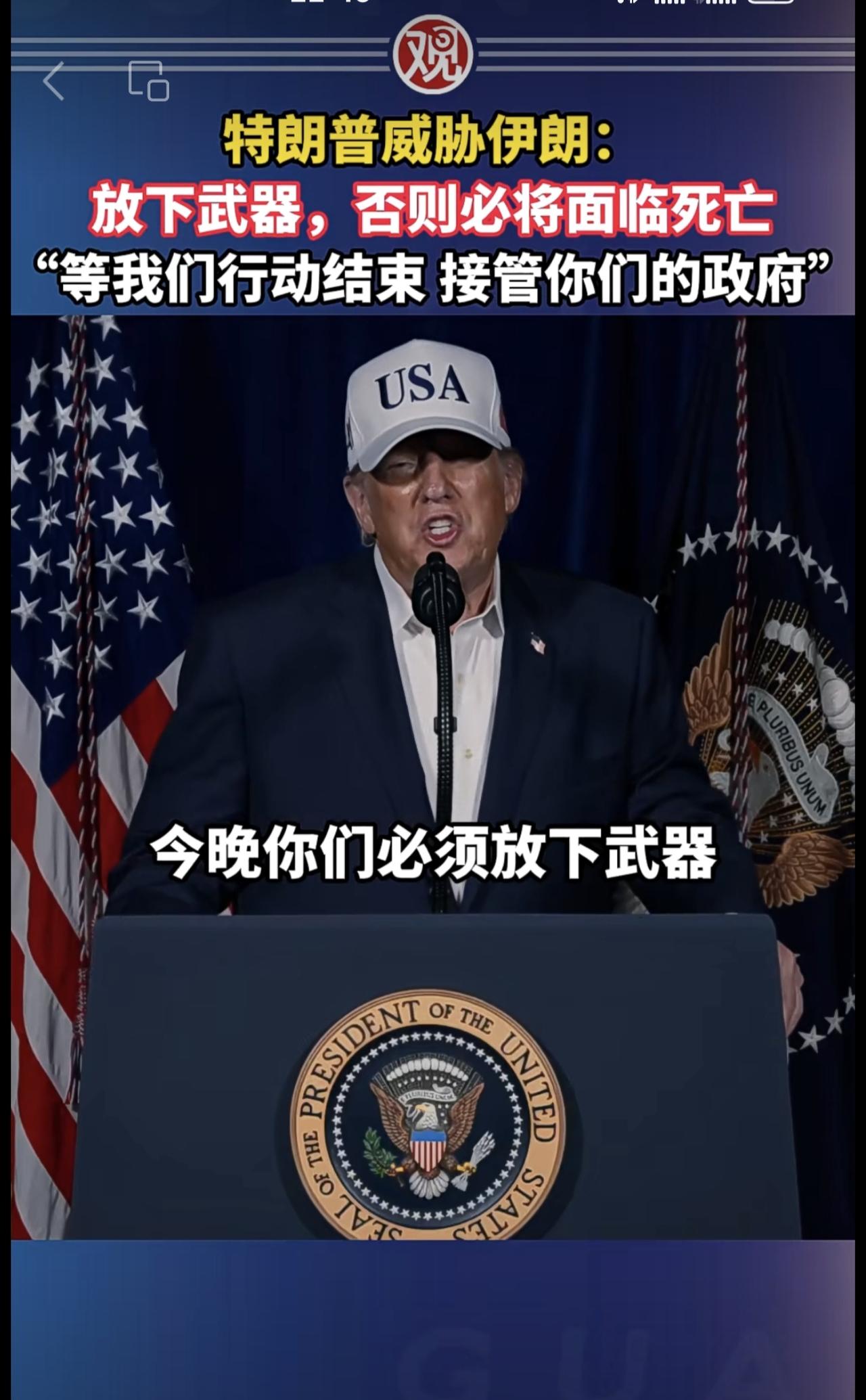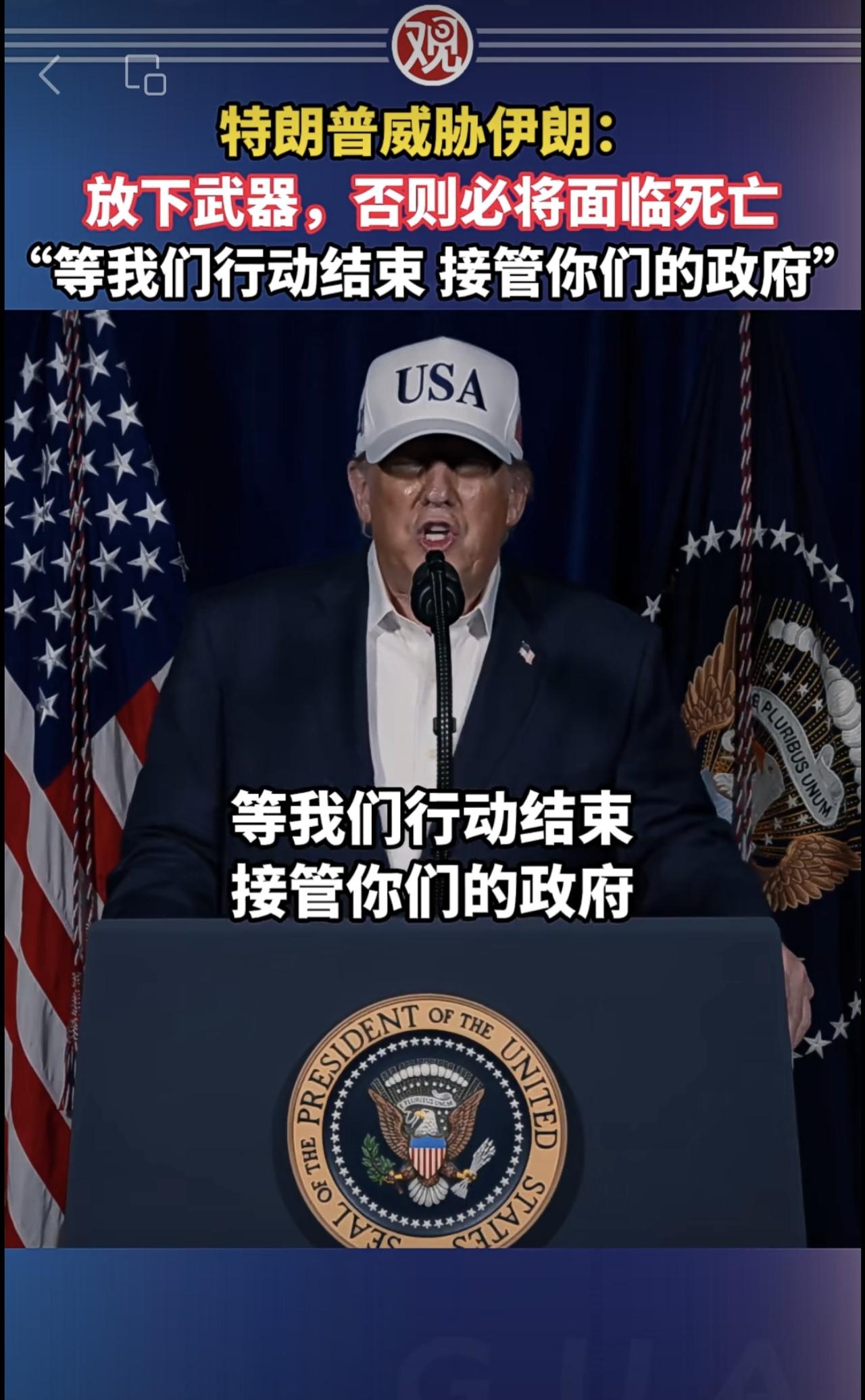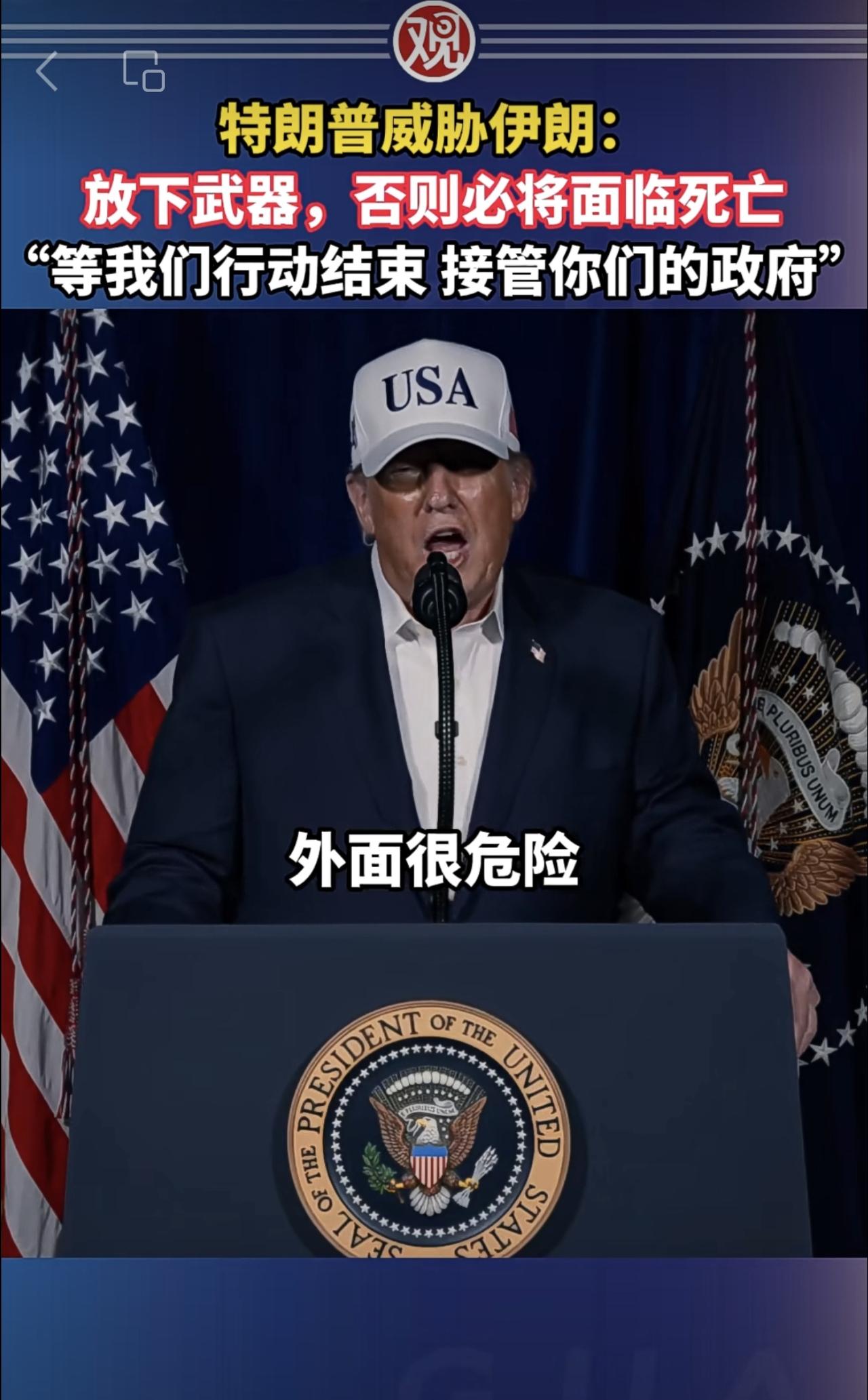 特朗普威胁伊朗:放下武器,否则必将面临死亡,“等我们行动结束接管你们的政府”