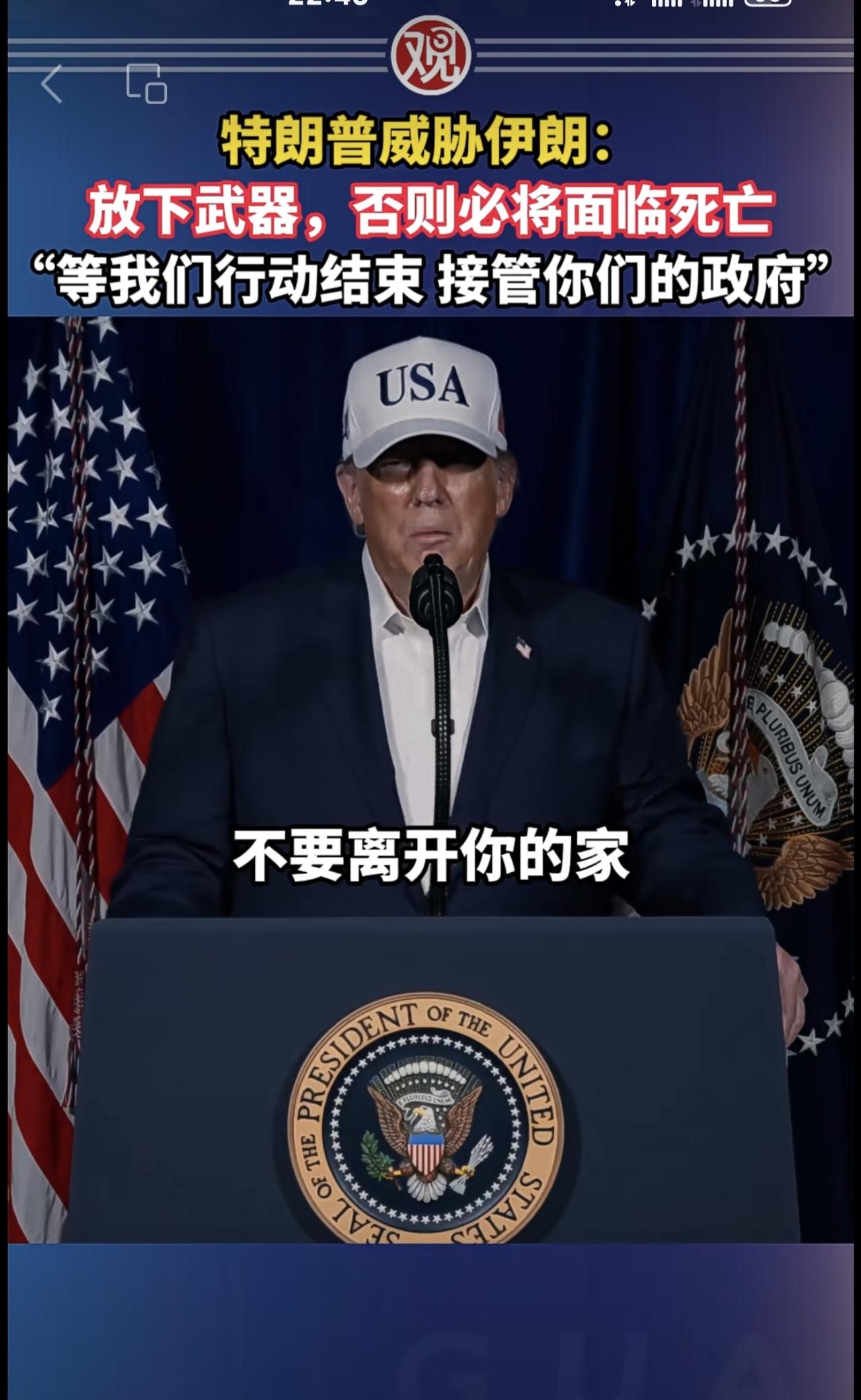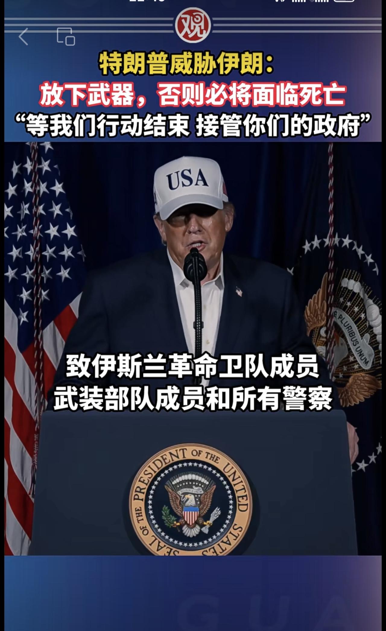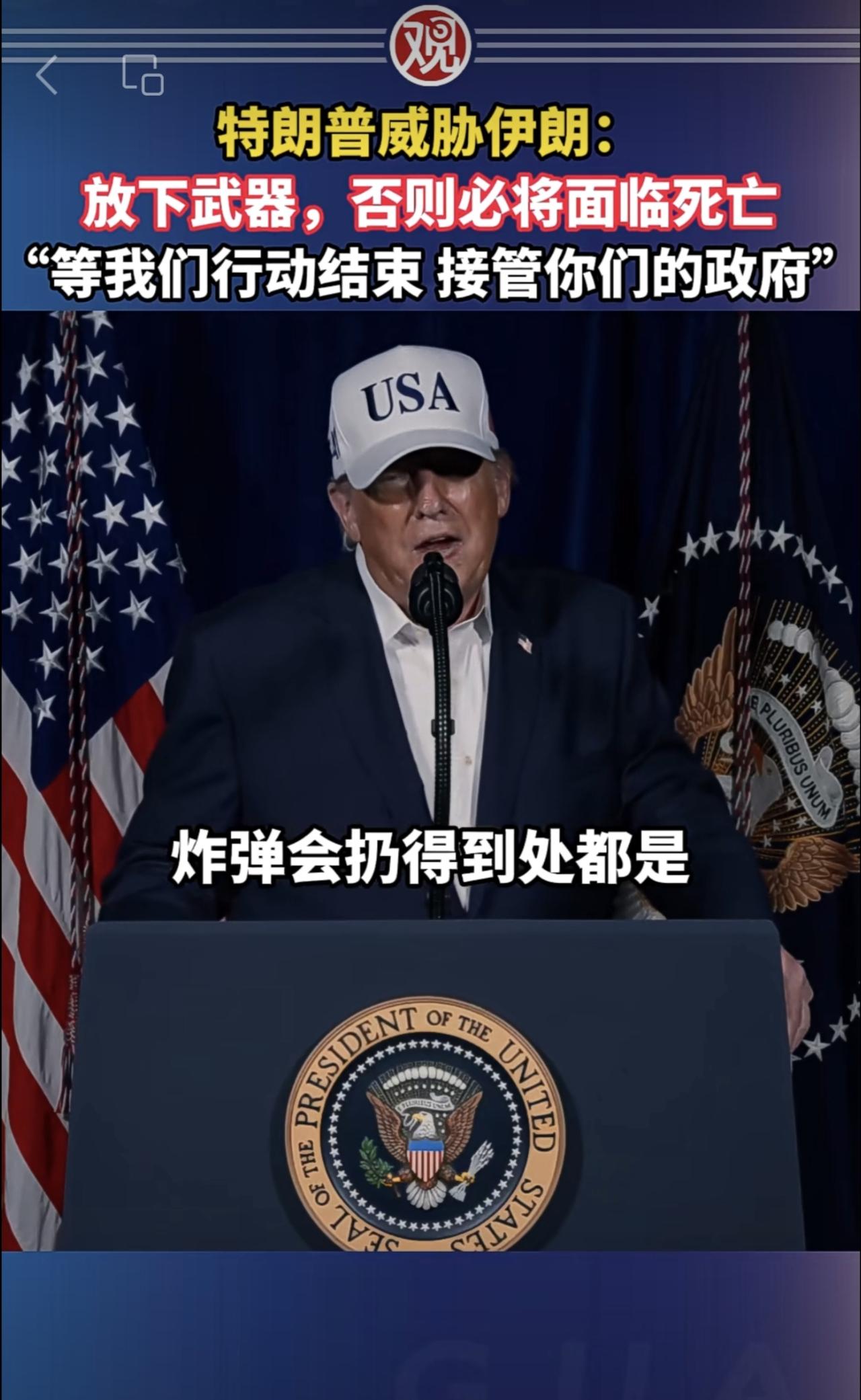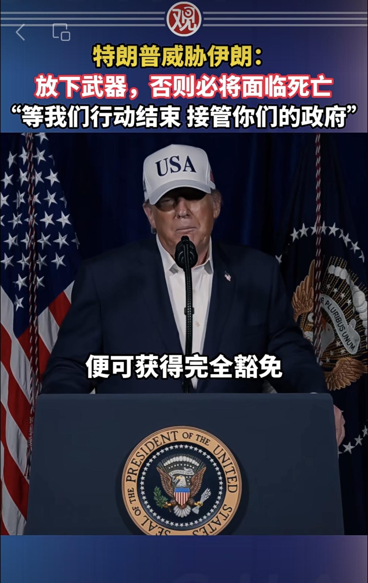 特朗普威胁伊朗:放下武器,否则必将面临死亡,“等我们行动结束接管你们的政府”