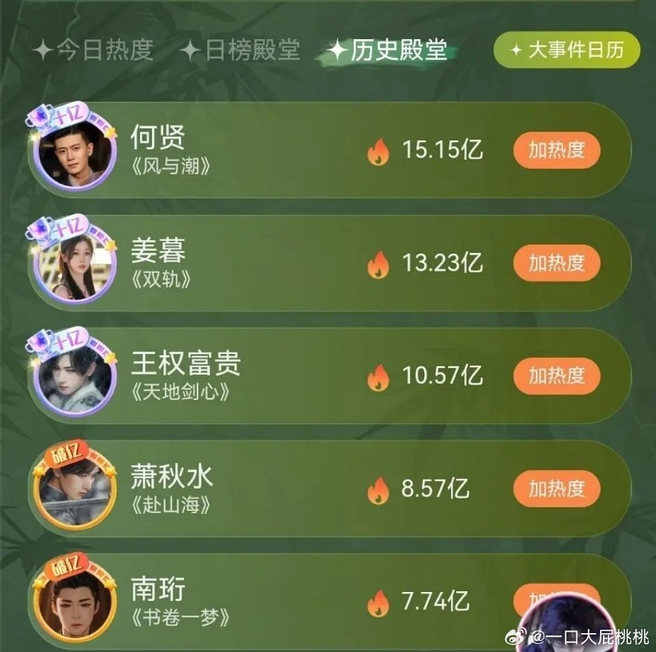 目前🥝角色热度前五👇🏻 第一是国超的何贤