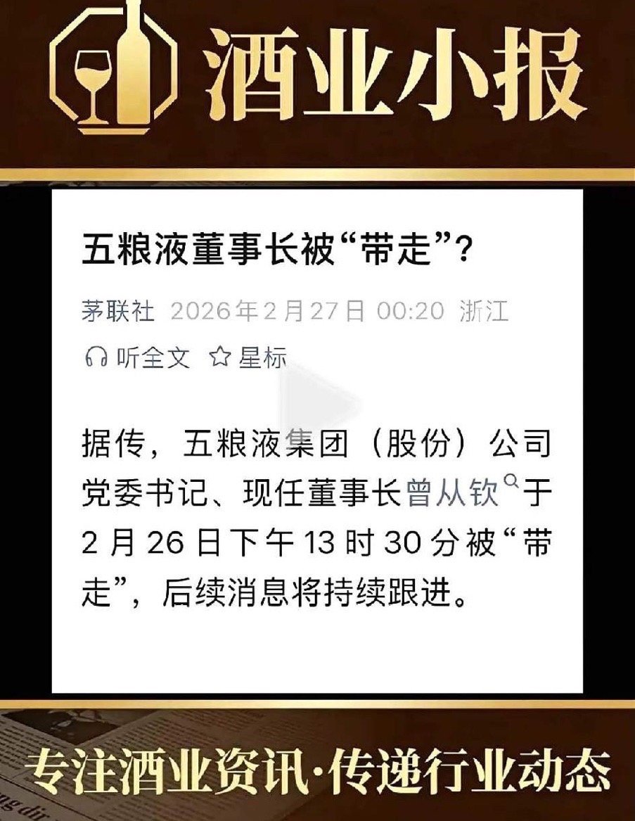 原来是白酒圈出现大事了!这可是涉及14亿国人的精神食粮!4000亿市值的五粮液掌舵人被查,涉嫌严重违纪违法,正接受宜宾市纪委监委审查调查,直接弥补了五粮液董事长不穿黄马褂不戴银手镯的遗憾!