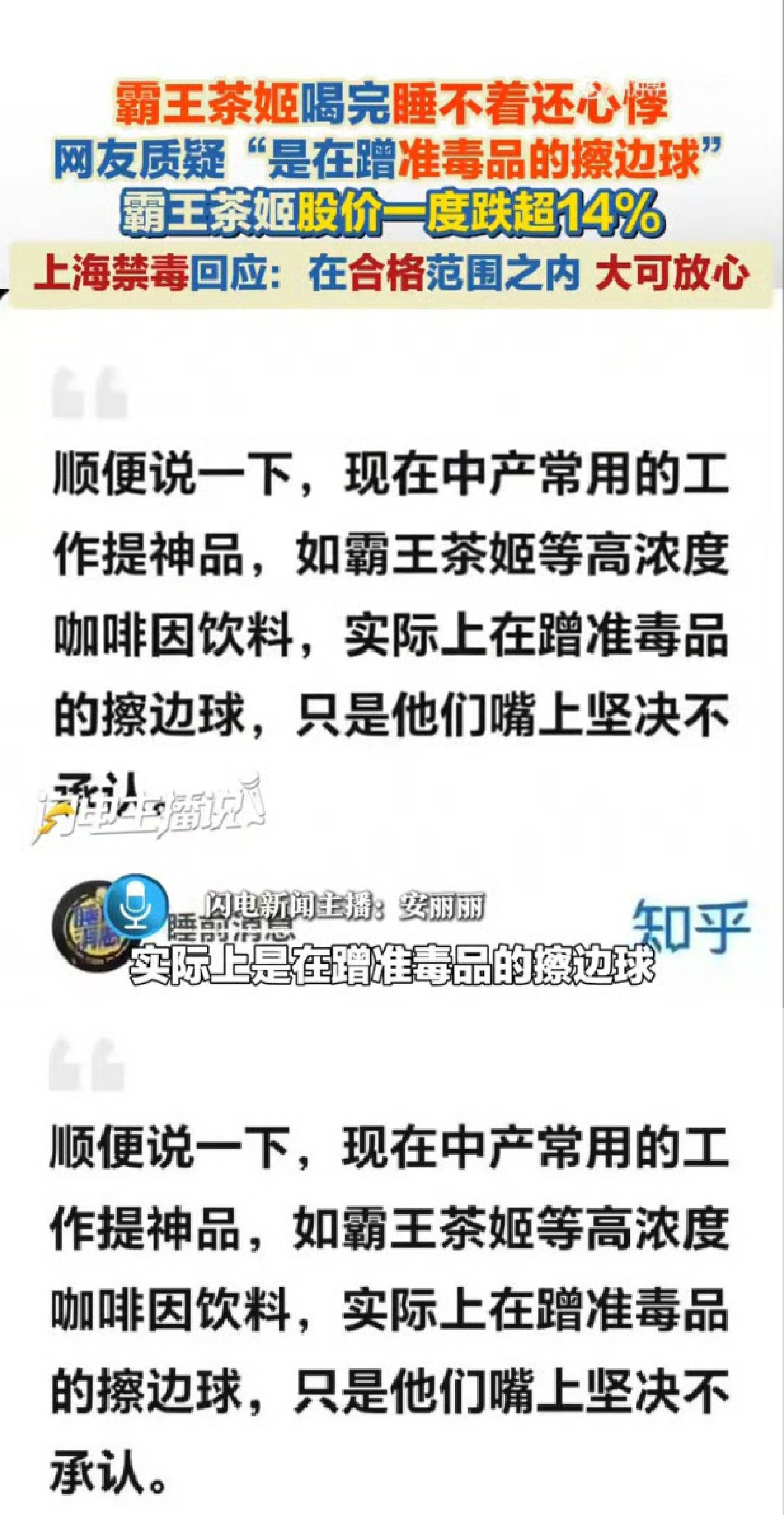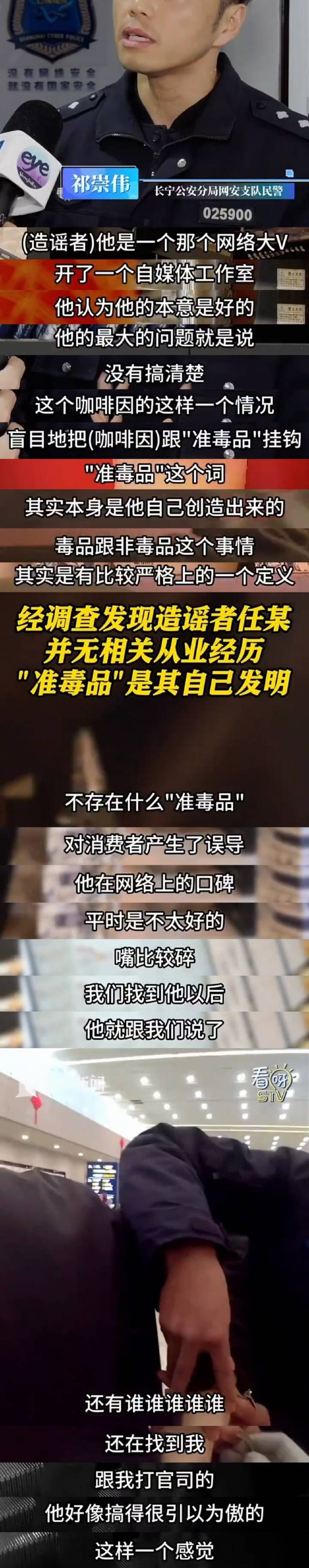 去年12月,马督工(任冲昊)在知乎平台讨论霸王茶姬等高咖啡因茶饮时,认为茶饮中含有的咖啡因系“准毒品”,引发网络热议,品牌方报警。近日,“马督工”相关言论被上海市公安局长宁分局认定为造谣,依法对其采取刑事强制措施。