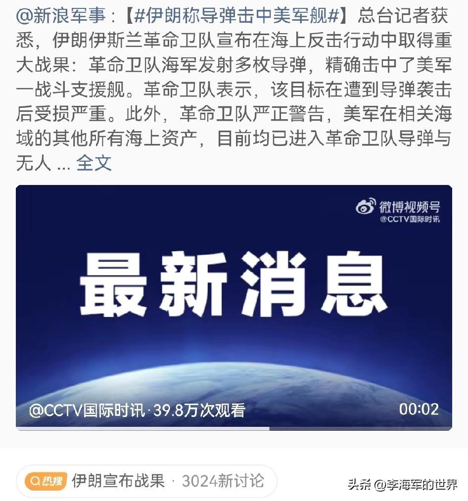 我的天哪,美军这下玩大了。 革命卫队海军的多枚导弹精砽击中了美军一艘战斗支援舰