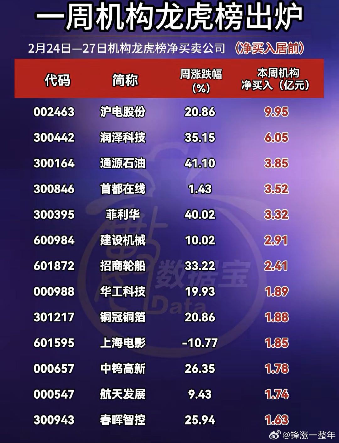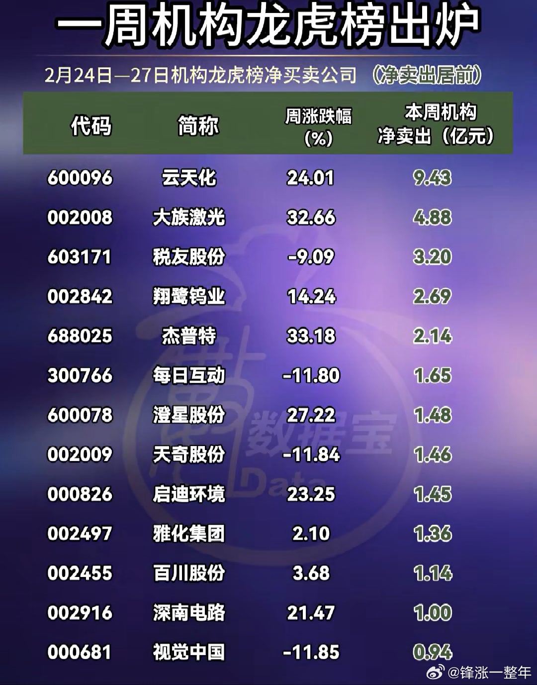 A股 本周机构龙虎榜买卖情况