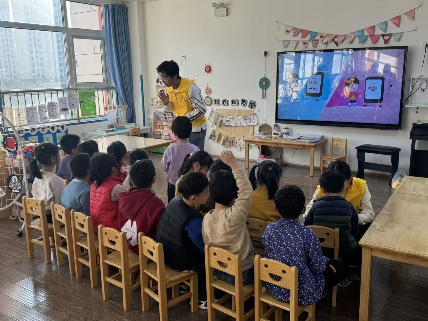 秦岭笑谈 【趣味实践护成长 防沉迷暖冬伴童心】为引导儿童青少年树立科学使用电子产品的意识,远离手机沉迷,筑牢健康成长的坚实防线,“童享无屏,成长赋能”社会调研实践队携手幼儿园,共同开展了一场别开生面的防手机沉迷主题实践活动,用趣味化、沉浸式的体验为孩子们的成长注入正向能量。活动伊始,实践队队员们精心设计的趣味动画PPT率先登场,色彩鲜艳的画面、活泼可爱的卡通形象瞬间吸引了孩子们的目光。紧接着,一段以“小老鼠沉迷手机”为蓝本的科普视频温情上线,视频通过小老鼠因长时间刷手机导致视力下降、错过同伴游戏、忽略家人陪伴等生活化场景,将过度使用手机可能引发的视力损伤、社交弱化、专注力下降等不良影响,以儿童易于理解的方式娓娓道来,让孩子们在潜移默化中认知手机沉迷的危害。此次实践活动以儿童的认知特点为出发点,将防手机沉迷知识融入趣味动画、互动问答和手工实践中,既避免了生硬说教,又让孩子们在轻松愉快的氛围中掌握了科学使用电子产品的方法。同时,丰富的线下活动也为孩子们搭建了交流协作的平台,助力他们在远离手机沉迷的同时,培养动手能力、社交能力和专注力,切实为儿童青少年的健康成长保驾护航,也为推动“童享无屏”的成长环境营造了良好的社会氛围。 寒假社会实践 青春三下乡社会实践曲阜师范大学感悟中的三下乡山东学子将青春写在大地上山东学子实践青春行大学生社会实践大学生寒假社会实践大学生寒假三下乡三下乡社会实践公益行三下乡社会实践曲阜师范大学(投稿人: