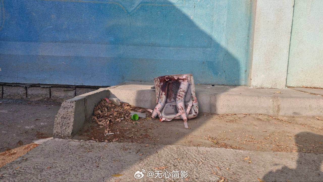 那个书包不仔细看真像一个小孩子被炸死,头都垂下来了感觉。