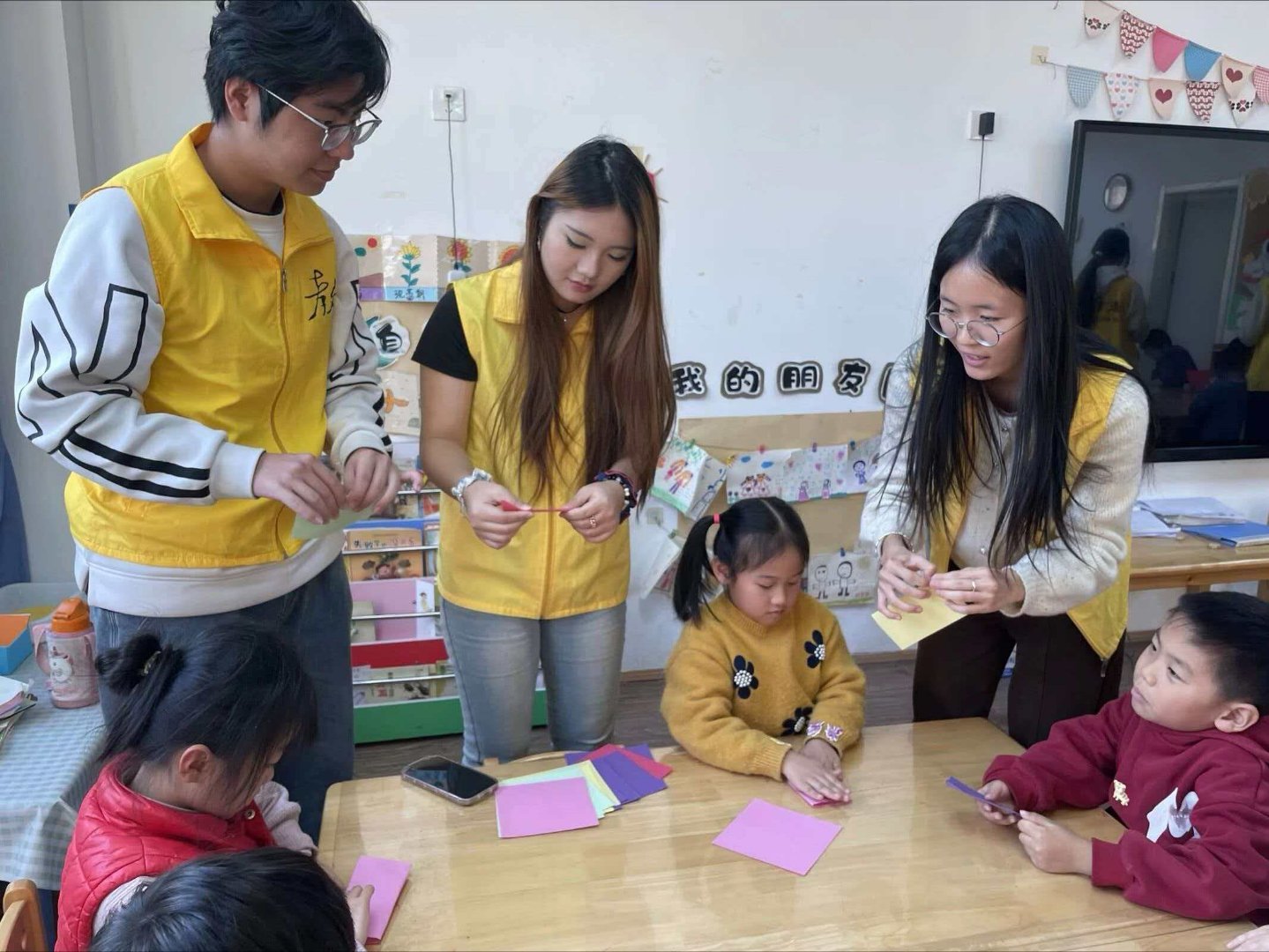 秦岭笑谈【守护童真,预防沉迷】“童享无屏,成长赋能”社会实践队开展防手机沉迷主题教育与趣味折纸实践活动,将安全教育与美育实践相结合,助力幼儿快乐成长。实践队员们结合幼儿年龄特点,用卡通动画向小朋友们讲解长时间玩手机的危害,孩子们积极举手互动,在轻松的氛围中明了“少看手机、多做游戏、多交朋友”的道理,主动许下“科学用手机,快乐多一点”的小约定。为让孩子们感受真实互动的乐趣,实践队员们开展趣味折纸实践活动,一步步示范折纸步骤,耐心指导孩子们,小朋友们兴奋不已,互相展示、分享喜悦,现场充满欢声笑语。此次活动,不仅让幼儿深刻认识到手机沉迷的不良影响,更通过折纸锻炼了手部精细动作,让孩子们在动手实践中收获成就感与幸福感。实践队员们用陪伴代替屏幕,用趣味替代沉迷,为孩子们营造健康、阳光、快乐的成长环境。曲阜师范大学大学生寒假社会实践 大学生社会实践山东学子实践青春行山东学子将青春写在大地上社会实践(投稿人